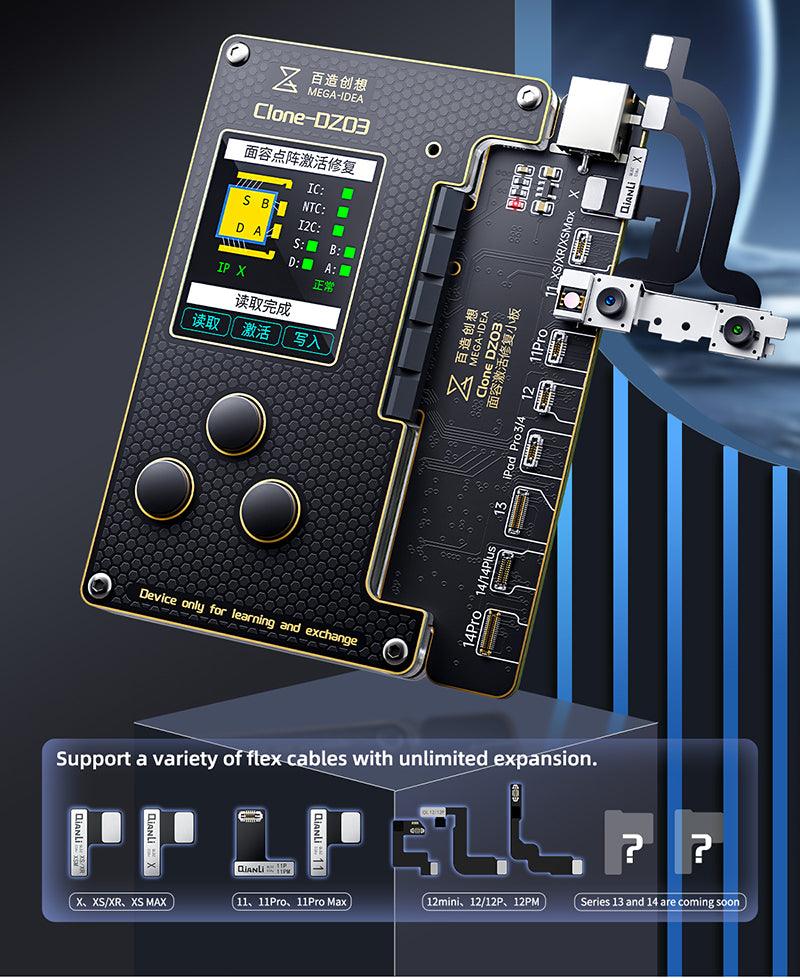 Note: The Qianli battery flex cable can be used with Qianli iCopy Plus, Copy Power and Mega-idea Clone DZ01 Programmers.