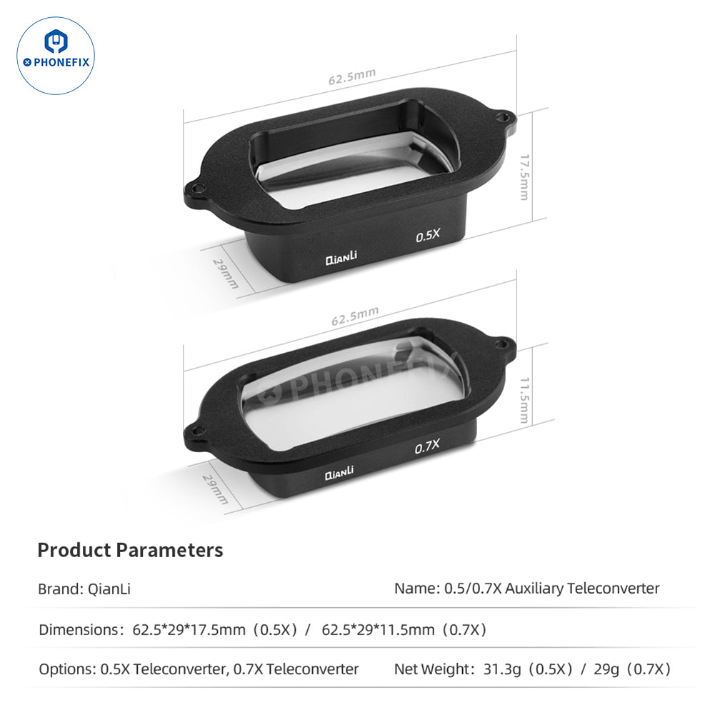 4. Larger Operating Space: The 0.5X teleconverter offers the longest working distance, ideal for macro operations; the 0.7X teleconverter provides a wider field of view, ideal for detailed repair work.