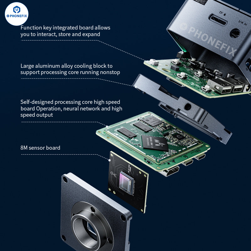 Qianli Super Cam Ai Gorilla Industrial Camera equipped with Sony 1/1.8 inch CMOS and Authentic 4K Real 8M Pixel Sensor. Qianli Gorilla 4K camera and Qianli 0.5X 0.7X Auxiliary Teleconverter Barlow lens can be used with 6558 Gorilla Trinocular Microscope for mobile phone repair and other electronic motherboard soldering repair. Qianli 0.5X 0.7X objective lens are designed for the YCS Integrated Microscope UV Lamp used with the 6558 series microscopes.