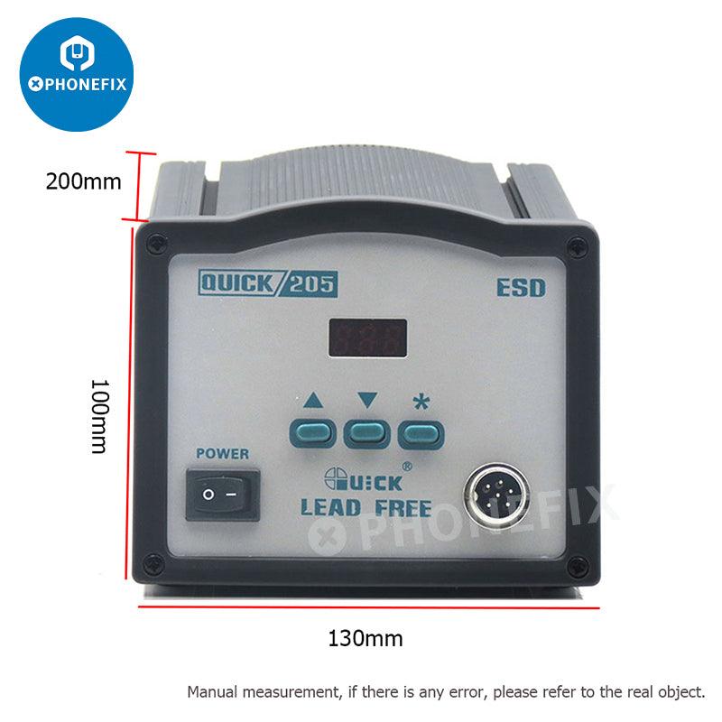 QUICK 205 150W High-Frequency Lead-Free Soldering Station Digital Display Thermostat Low Maintenance Cost Soldering Rework Station for mobile phone BGA IC components desoldering.