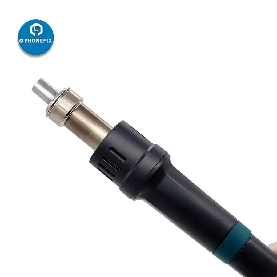 When you use a microscope, you are forced to use your hot air at an angle. This makes it more difficult to aim hot air directly on the chip or component you are trying to heat. With 45 Degree Curved Angle Nozzles, you can use your 861DW handpiece with a microscope and still aim your heat directly onto the chip.
