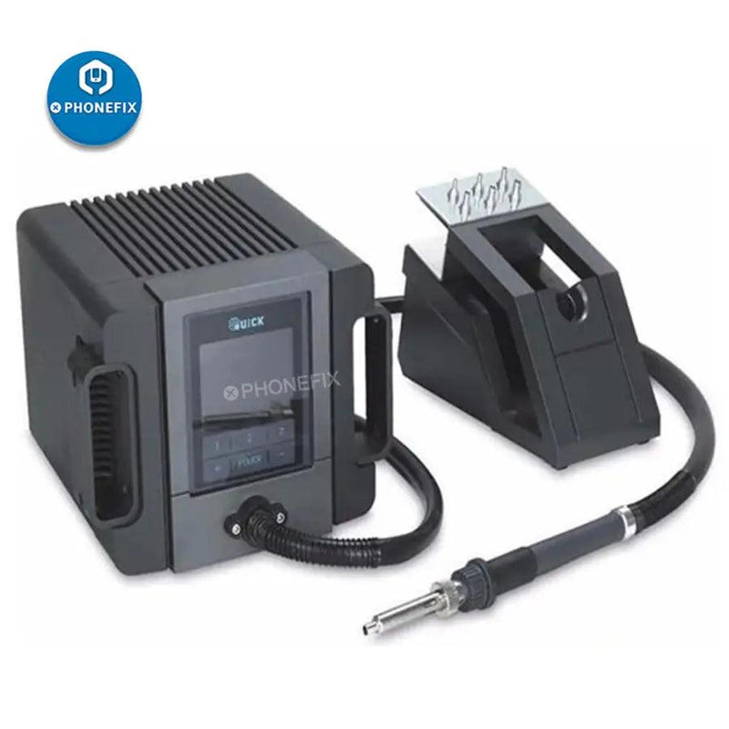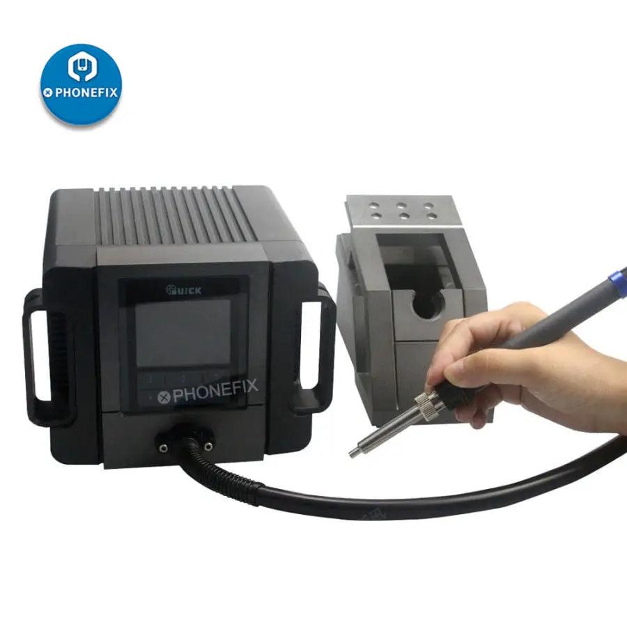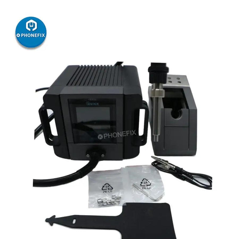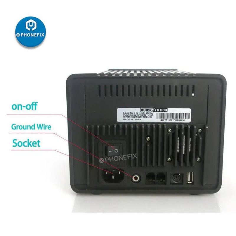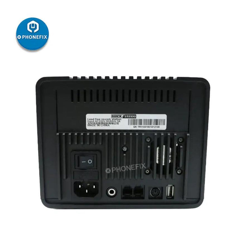 QUICK TR1100 intelligent lead-free phone rework station for phone soldering rework, QUICK TR1100 ESD hot air soldering station with a brilliant LCD display, and PC communication capability, it is great for high temperature solder rework applications.