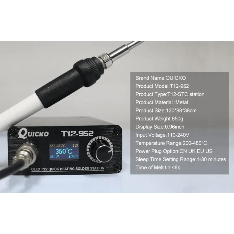 Quicko T12 soldering station. Brand new T12-952 electronic welding iron with OLED Display, 2021 New version T12 OLED Digital Soldering Iron T12-952 soldering station with 907 handle/M8 handle/P9 handle and soldering iron tips for phone repair.