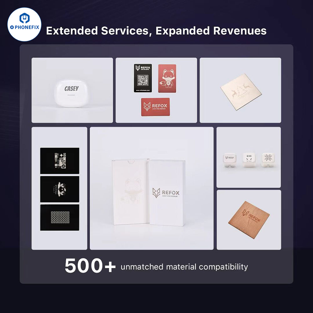 REFOX RK10 Cold Light UV Laser Machine with 5W laser power for iPhone screen separation, Phone back glass removal, mid-frame removal, and screen bezel removal without damaging the Phone components. REFOX RK10 UV laser marking machine is not only used for mobile phone repair, but also supports laser marking on a variety of materials such as plastic, metal, wood and leather.