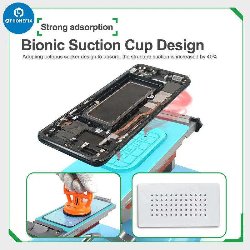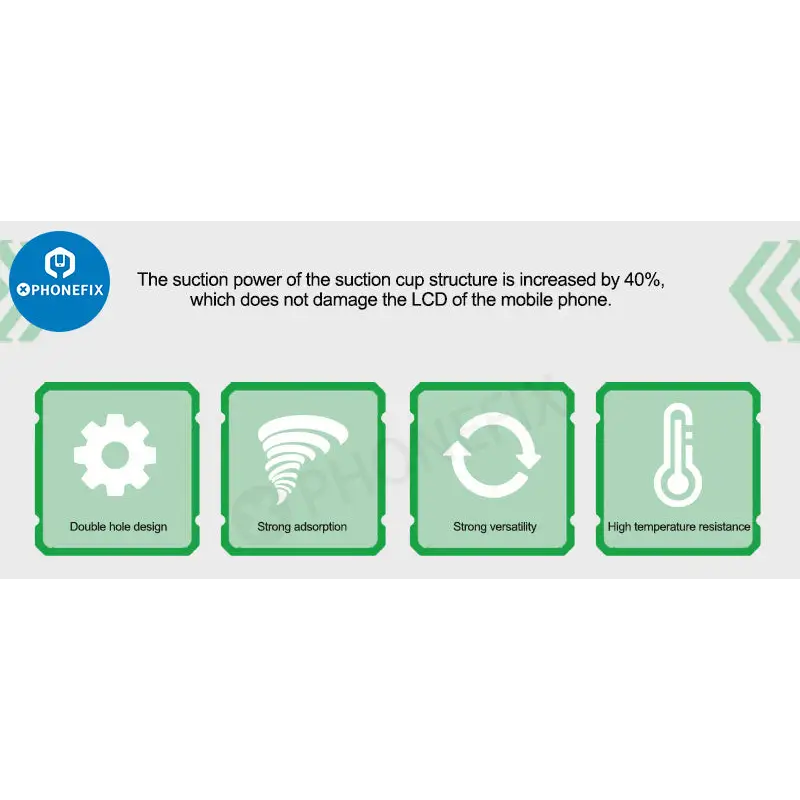 Features: Universal fit Double hole design Strong adsorption Soft and comfortable Strong versatility Bionic suction cup design High temperature resistance Good elasticity and no deformation Universal 7-inch splitter, good for mobile phone screen repair