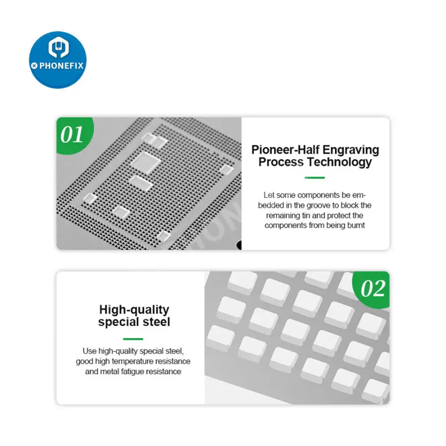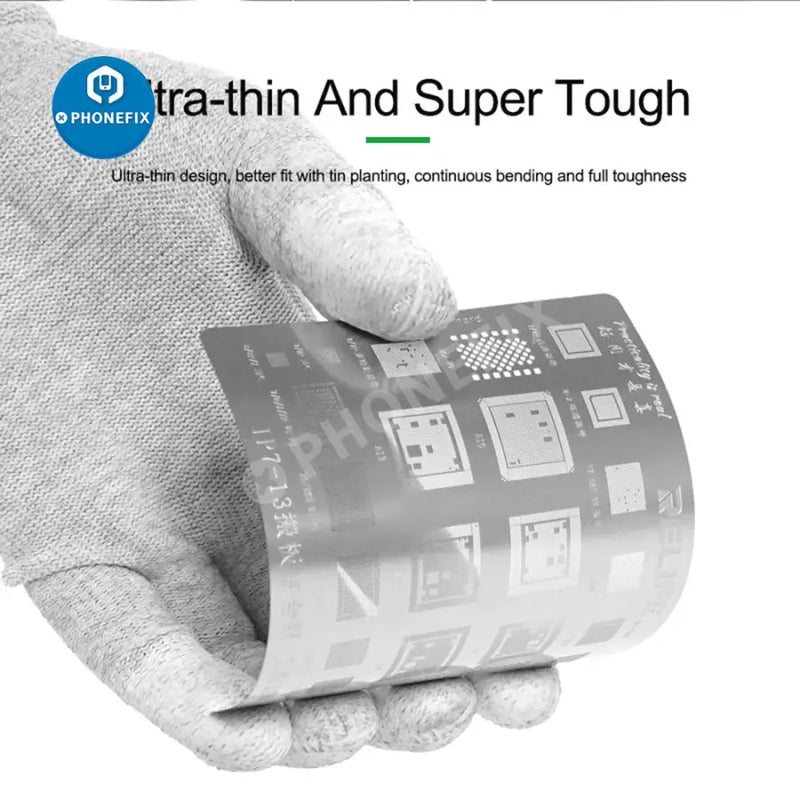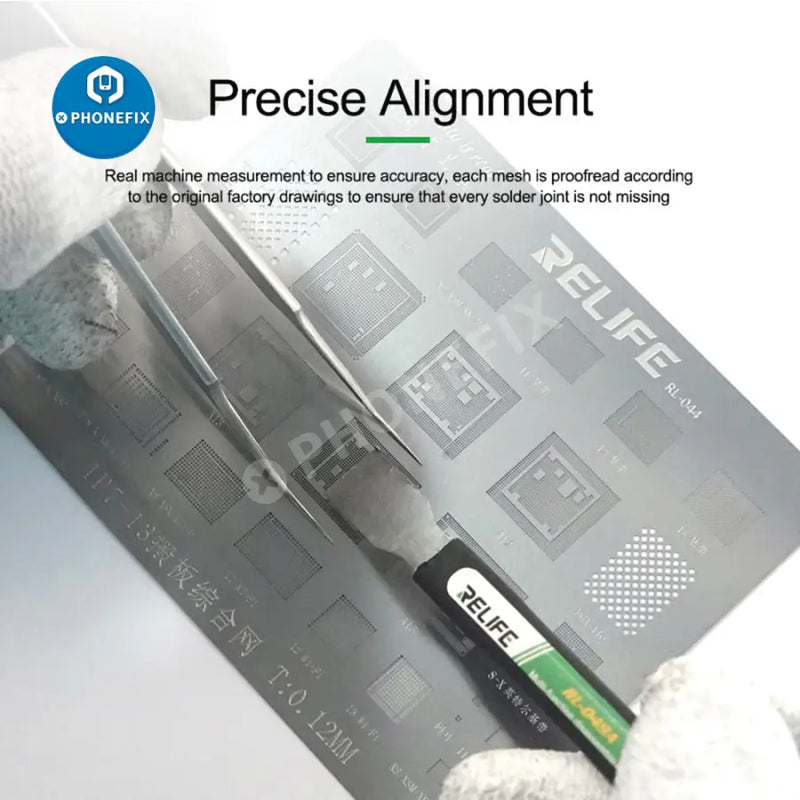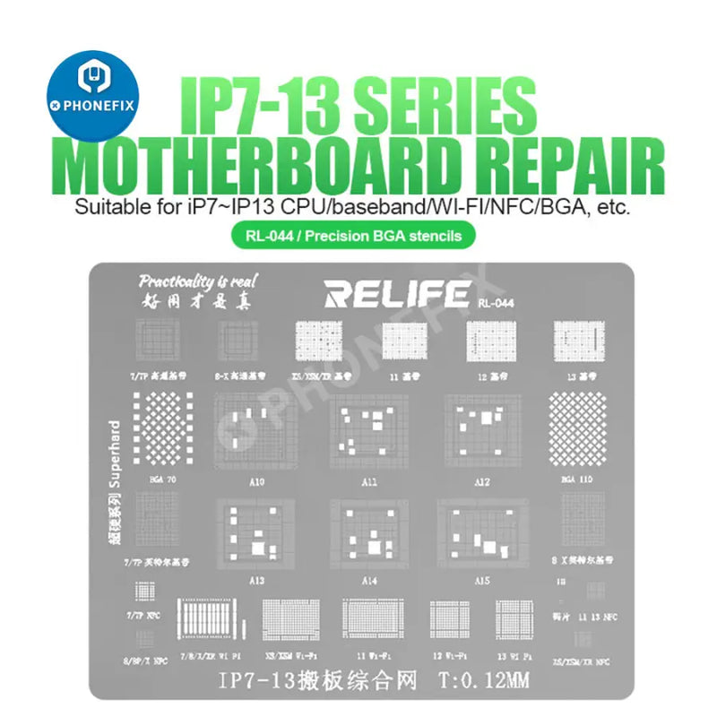 RELIFE RL-044 Precision BGA Stencils For iPhone 7-13 Series Motherboard repair, 0.12MM Stencils Rapid Heat Dissipation Suitable for iP7~IP13 CPU/ Baseband/ WI-FI/ NFC/ BGA.
