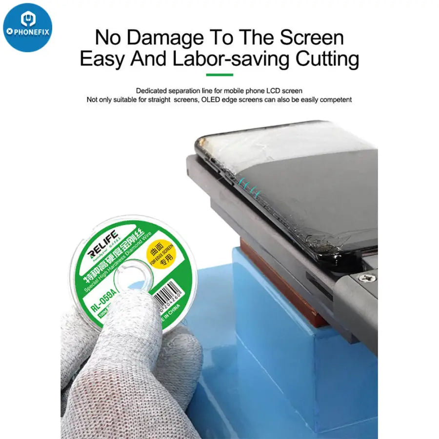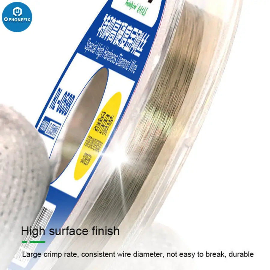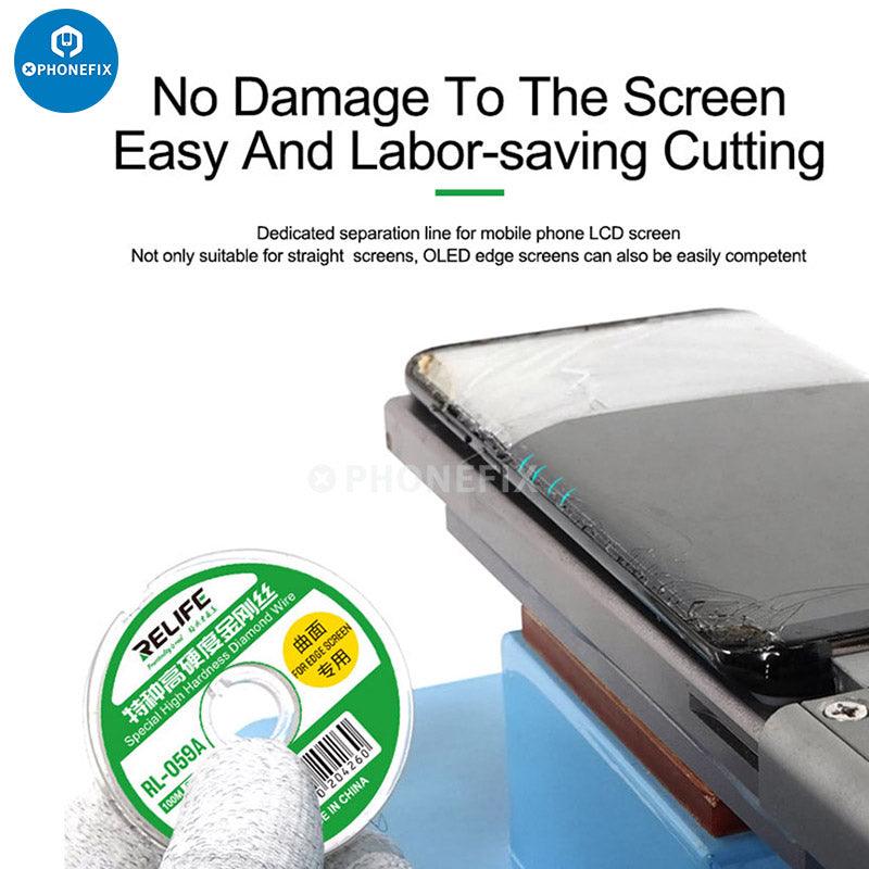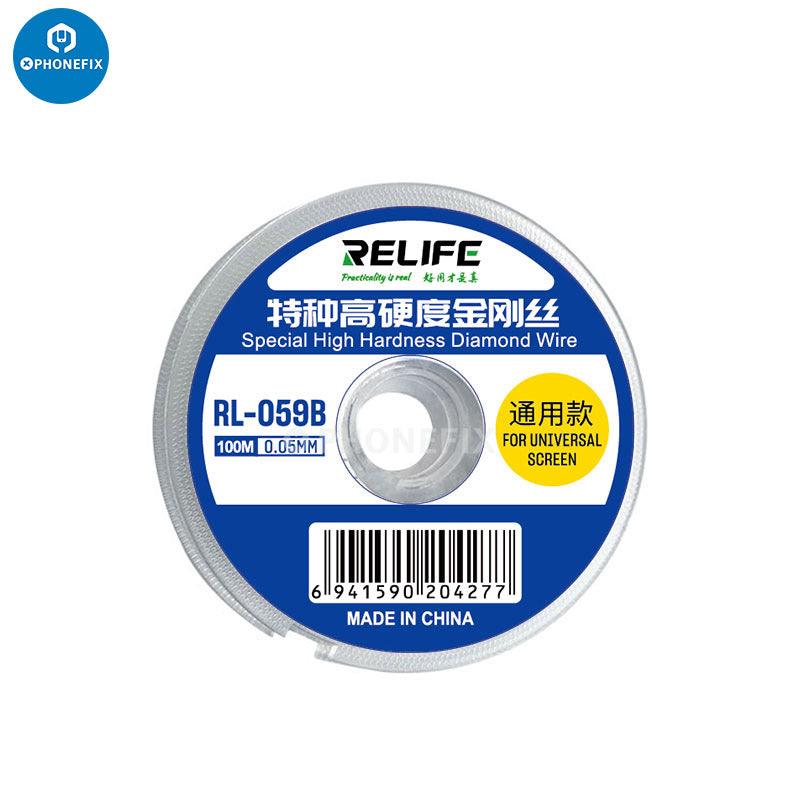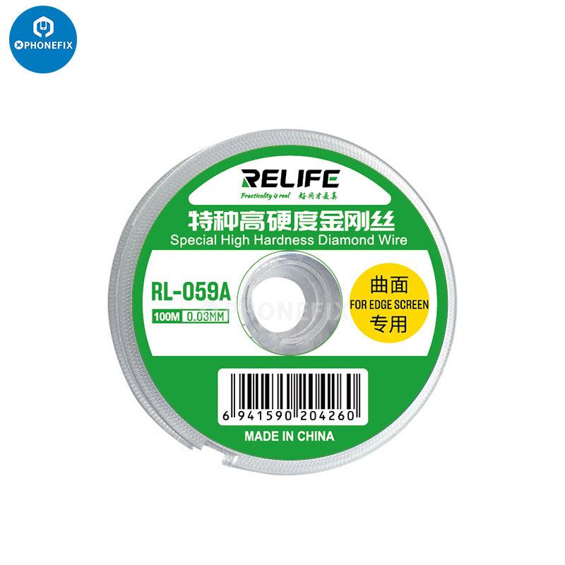 RELIFE RL-059A/B/C Ultrafine 0.03Mm Cutting Stainless Alloy Gold Molybdenum Wire for Edge Screen Separation. RELIFE High Hardness Special Diamond Wire Cutting Molybdenum Wire 0.03 0.08mm For Mobile Phone LCD Screen Separation Line.