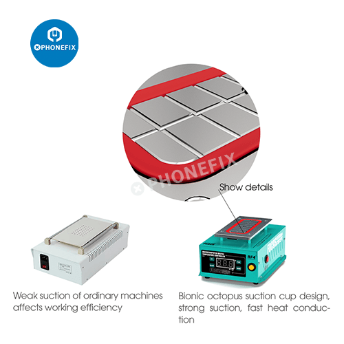 - Large heating platform, compatible for LCD or LED screen assembly <=7 inches;