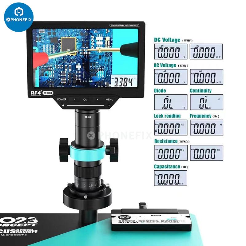 RF4 RF-50M HD Digital Microscope Camera Multimeter Probes Monitor All In One Machine. RF4 RF-50M Built-in 1080P HD Microscope And With Multimeter Probes Tester BGA Welding Workbench For Electronic Motherboard PCB CPU IC BGA SMD Testing Soldering Repair, like Mobile Phone, iPad, Tablets, ect.