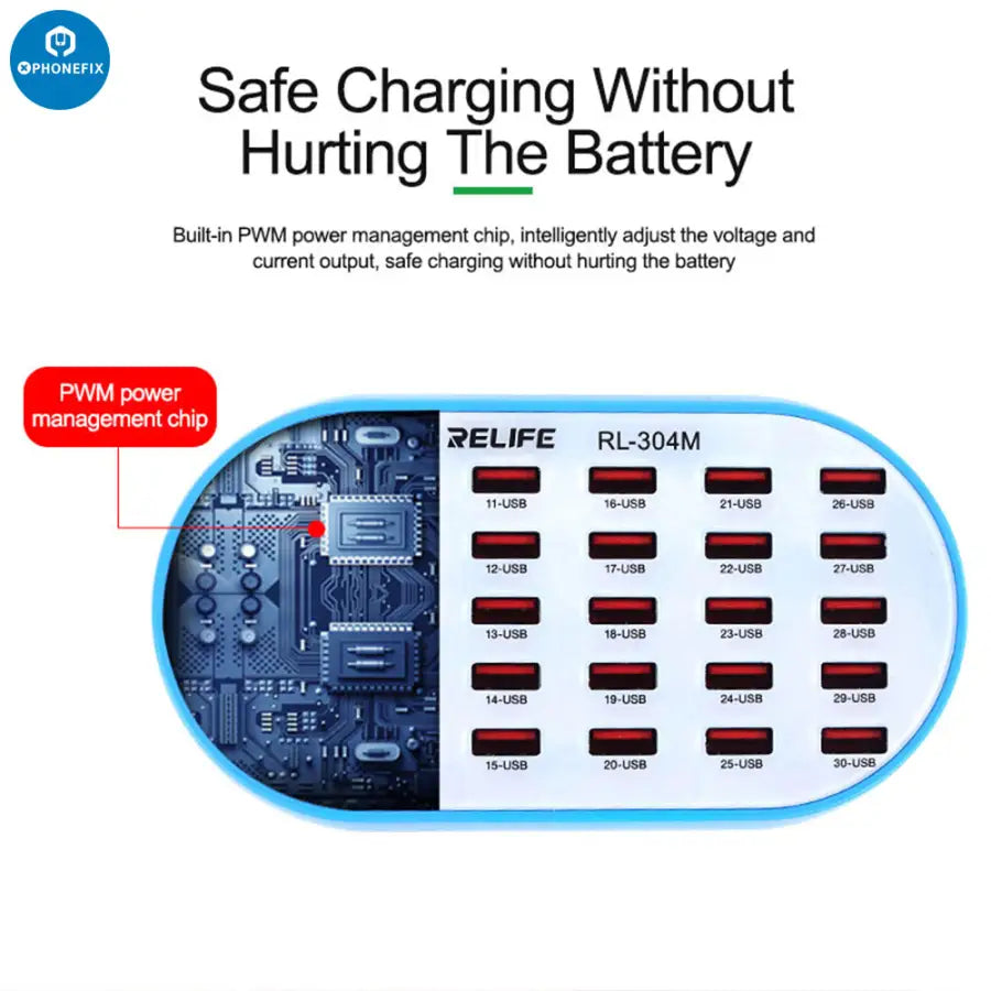RELIFE RL-304M 160W Intelligent High Power 30-port Charging Master USB Smart Socket For Safe Charge 30 Devices At The Same Time.