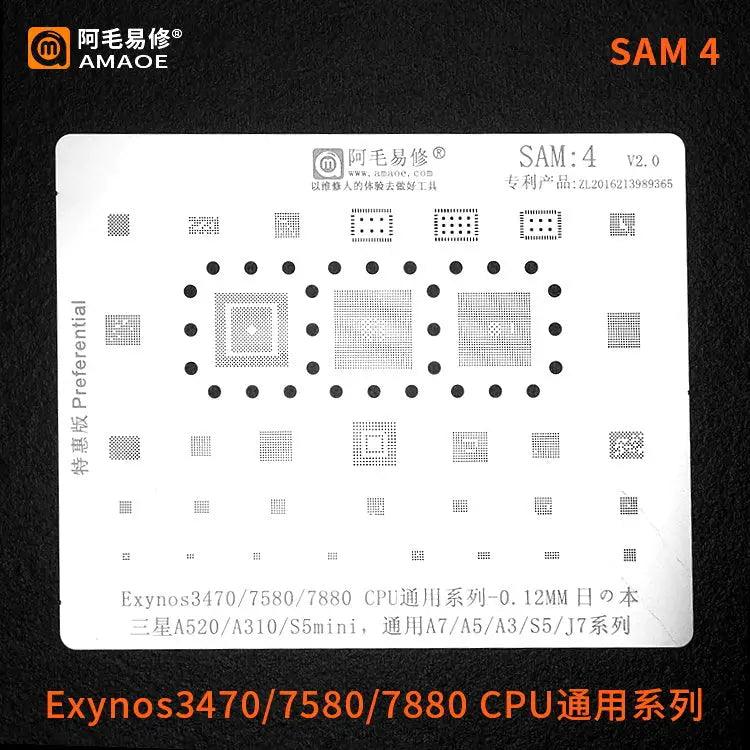 0.12MM Amaoe BGA Reballing Stencil for Samsung SAM 1/SAM 2/SAM 3/SAM 4/SAM 5/SAM 6/SAM 7/SAM 8/SAM 9/SAM 10/SAM 11/SAM 12/SAM 13/SAM 14/SAM 15/SAM 16/SAM 17/SAM 18/SAM 19/SAM 20/SAM 21. Amaoe/DIYPHONE BGA Reballing Stencil steel mesh for Samsung CPU IC chips soldering repair.