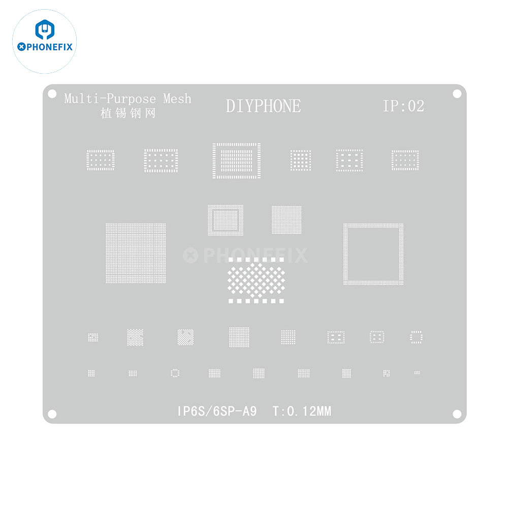 DIYPHONE 0.12mm silver BGA reballing steel stencil template for iPhone 6-17 Pro Max. High-quality silver stencil net BGA reballing stencils steel stencil templates for iPhone motherboard chips soldering repair.