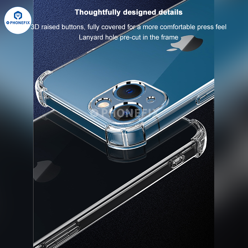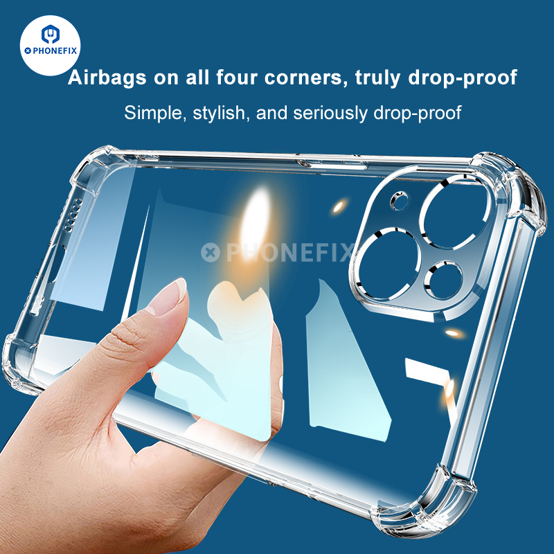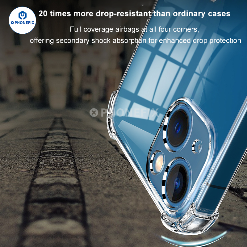 The Shockproof Soft Case is designed for superior drop protection, featuring reinforced airbags at all four corners to absorb shock and provide extra cushioning. Its clear design showcases the phone’s natural beauty while offering maximum durability.