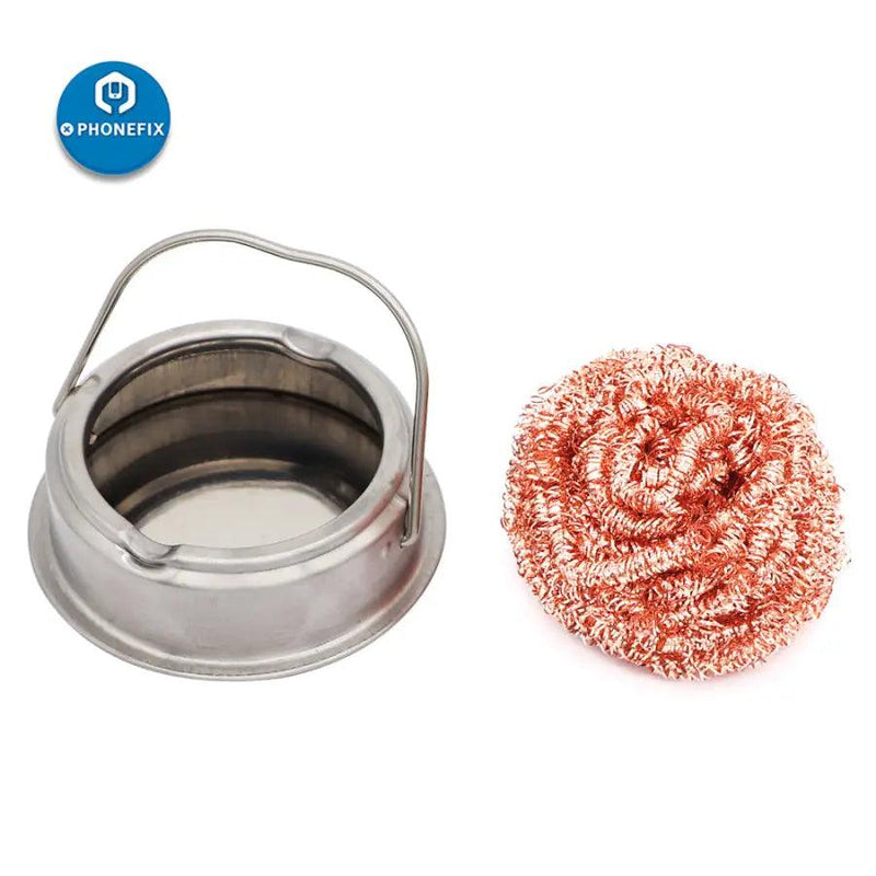 Lead-Free Gold Solder Iron Tip Cleaner Wire Ball Stand Set, Smokeless Non-toxic Welding Soldering Cleaning Assistant, Welding Nozzle Cleaning Steel Wire Ball for Universal Soldering Station, Solder Iron Tip Head Cleaning Tool, Save energy and maintain temperature of the iron.