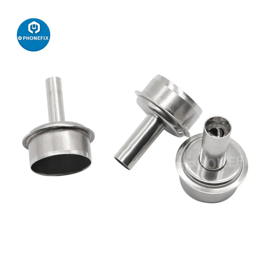 Quick 861DW Hot Air Gun Nozzles 5/8/10MM Spiral Nozzles, hot air gun nozzles sleeves mouth for BGA rework station hot air gun, heat gun resisting nozzles for phone soldering repair tool, 45 degree curved angle nozzle sleeve, spiral silver resisting nozzles for Quick 861DW hot air gun soldering station.