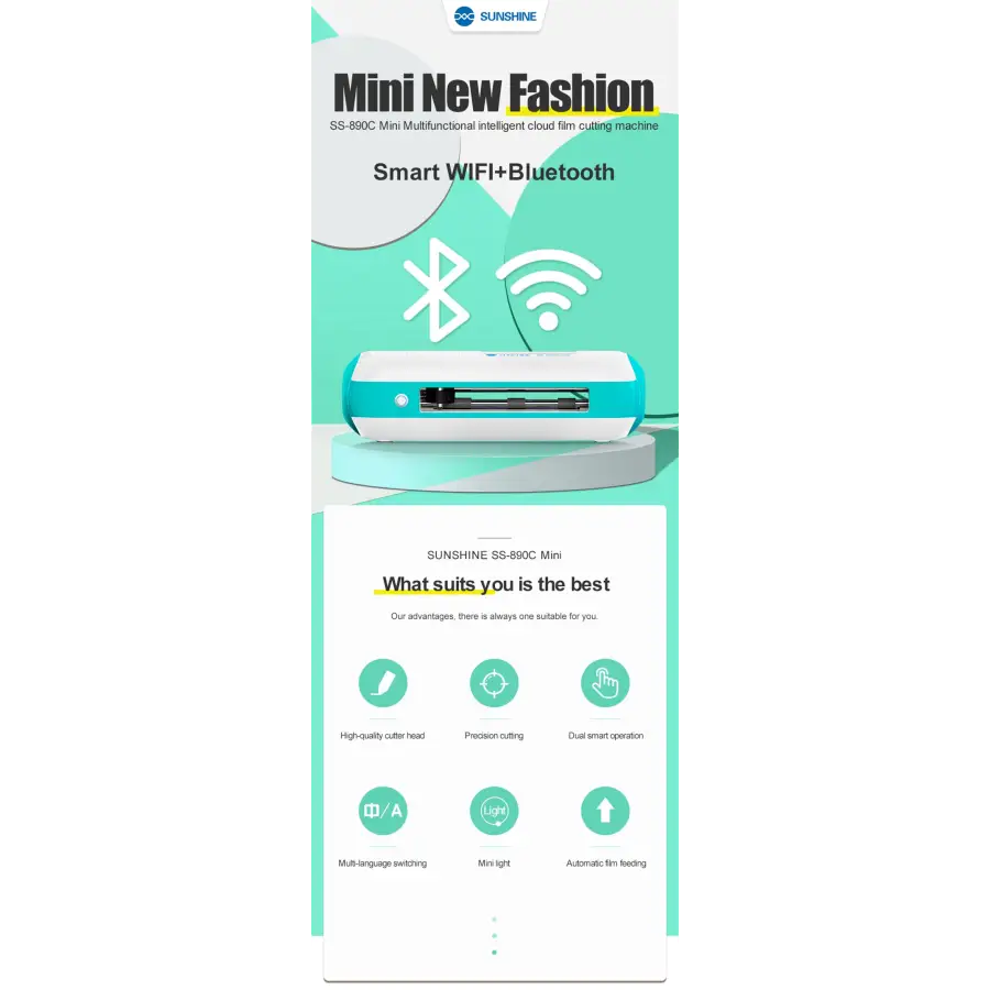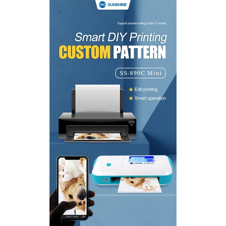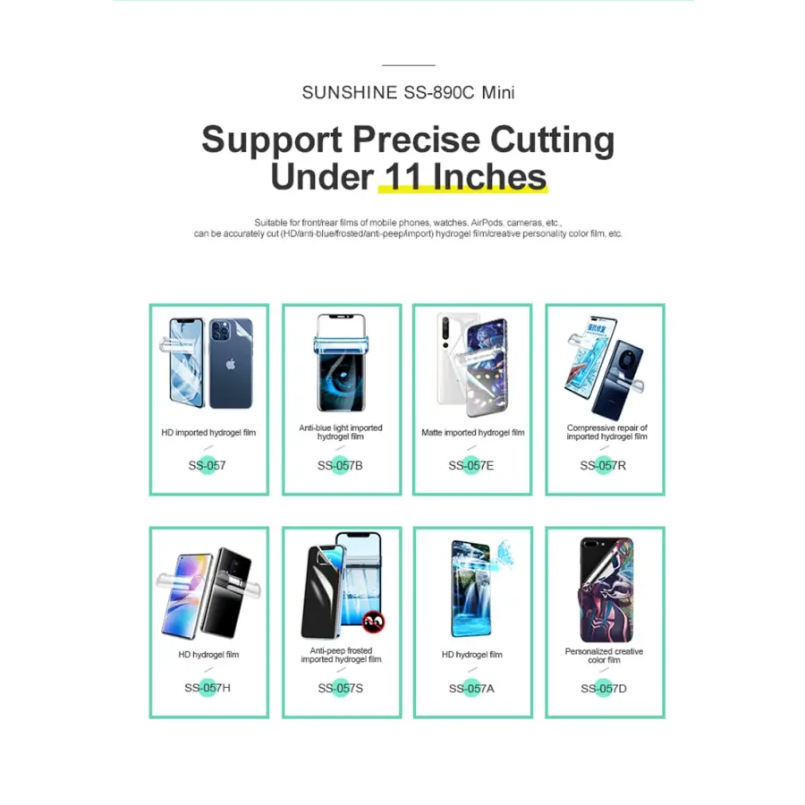 Sunshine SS-890C MINI intelligent cutting machine DIY Printing WiFi Bluetooth mobile phone protector hydrogel film cutting tool.