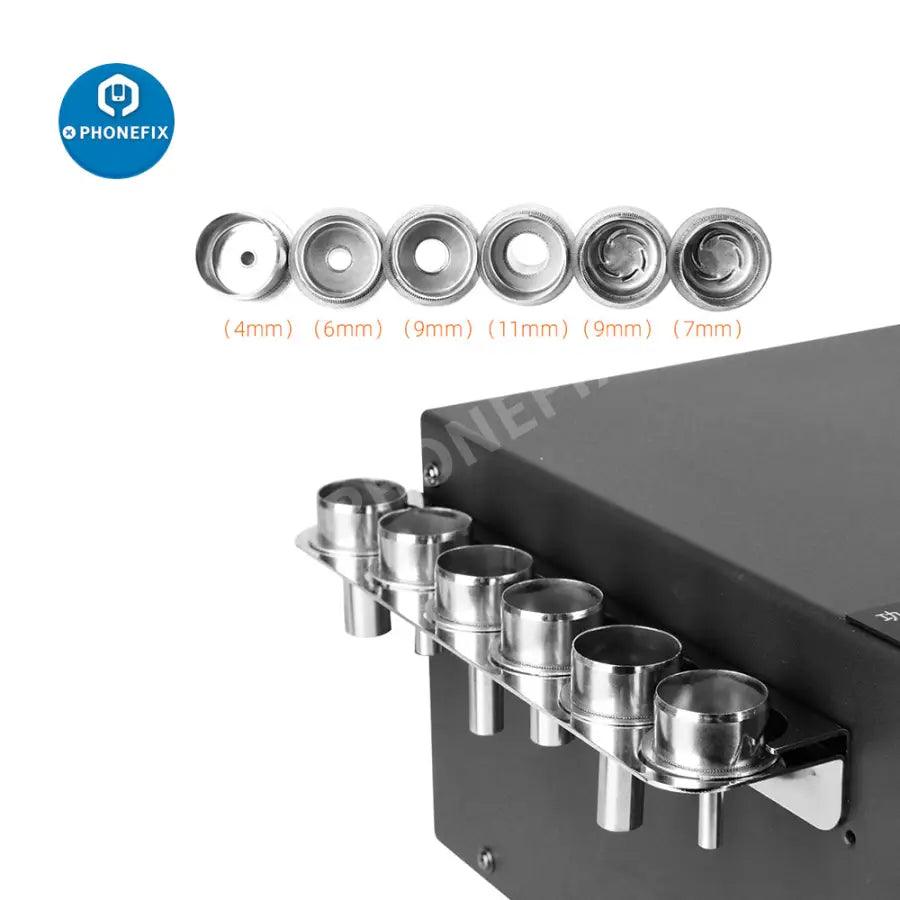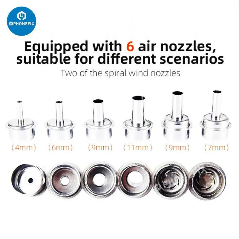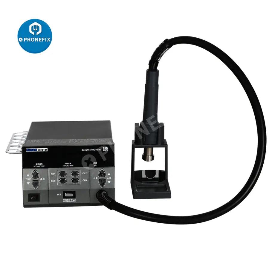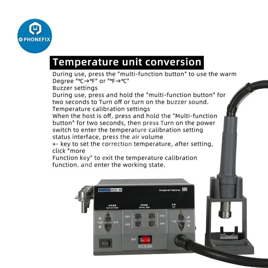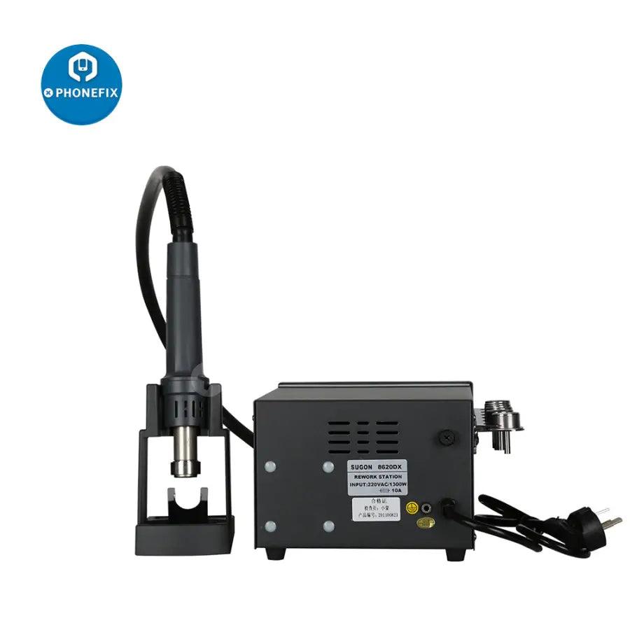 SUGON 8620DX Pro 1300W Hot Air Gun BGA Rework Station With with 6pcs nozzles(4mm 6mm 9mm 11mm Straight air nozzle and 7mm 9mm spiral nozzles) For Mobile Phone BGA SMD Chip welding desoldering. Sugon 8620DX-Pro Microcomputer Temperature Control BGA Rework Station.