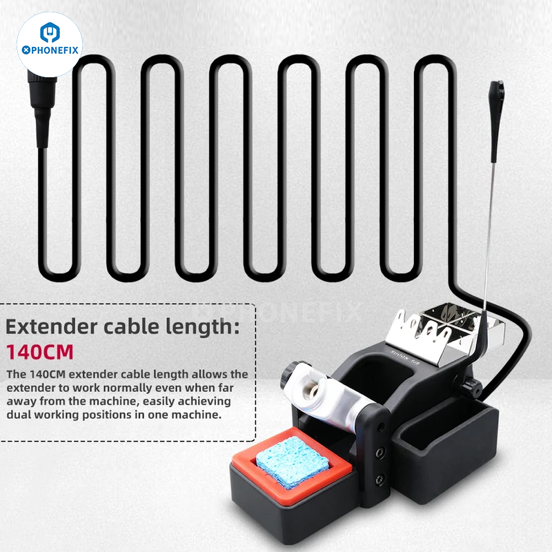 Sugon TJ8 Features: 1. Sugon TJ8 soldering iron extension base with auto sleep mold, 140cm length extender cable allows the extender to work even when away from the machine, making it easy to achieve dual working positions in one machine. 2. Sugon TJ8 is specially used for T60 soldering station to realize T60 dual-handle soldering station channel, compatible with T115 T210 T245 handle. Note: Dual handle cannot be used at the same time! The handle of the T60 soldering station and the handle of the TJ8 extender cannot be used at the same time. Only one of the handles can be heated at the same time.