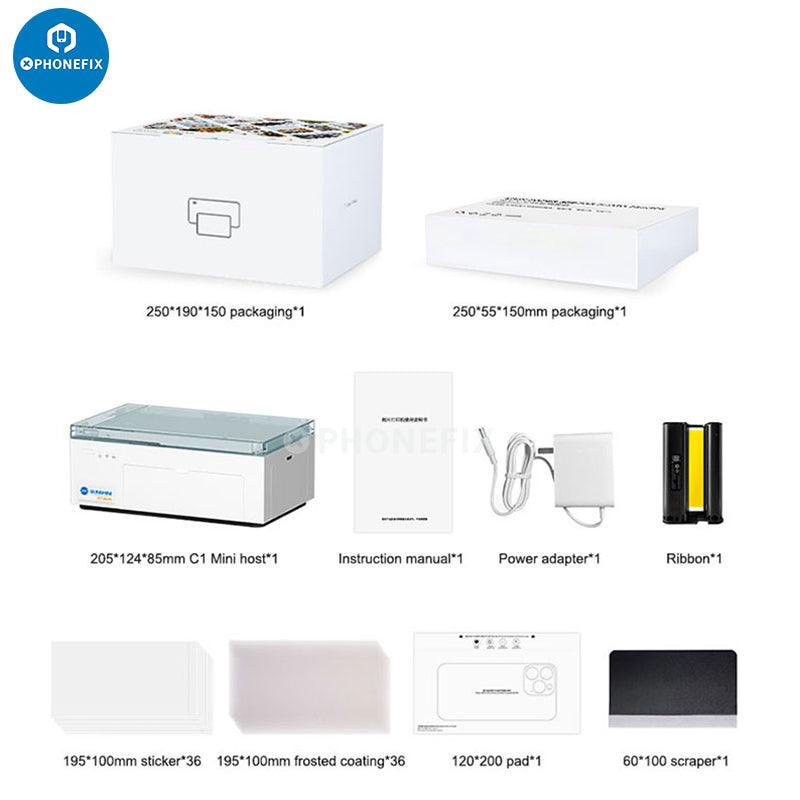 Sunshine C1 Mini Mobile Phone Color Film Printer 7.5-inch High-definition Colorful Phone Back Cover Protective Film Printer Machine. This printer is made for various electronic equipment screens below 7.5-inch, such as mobile phones, mini pads, tablets, watches, ect.