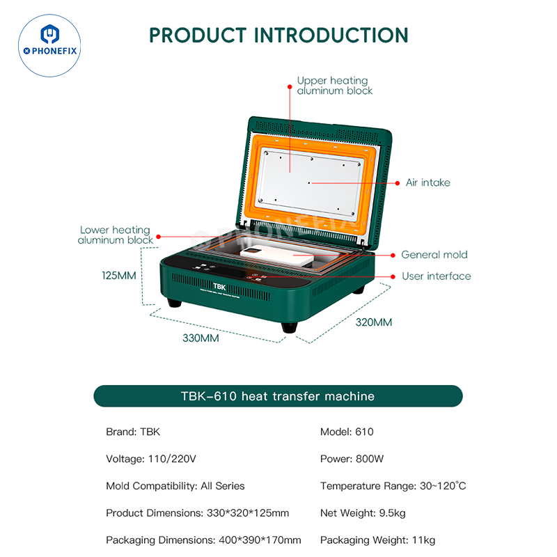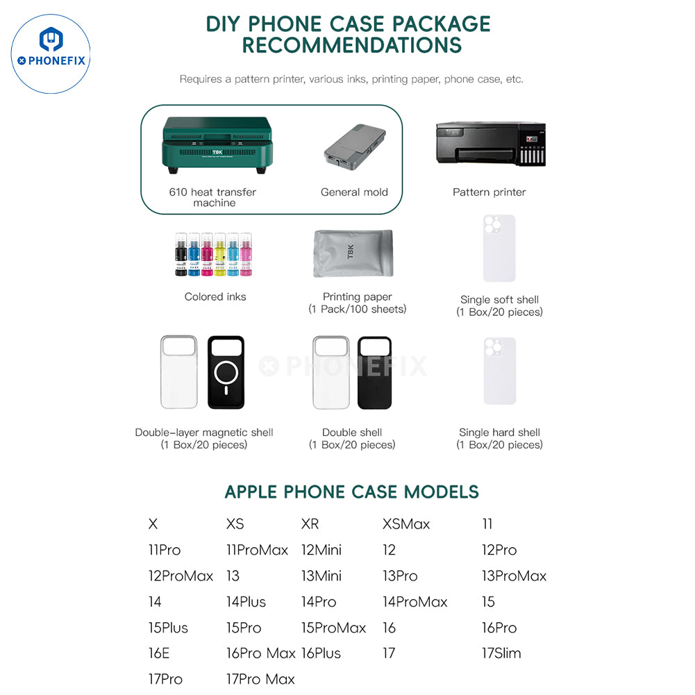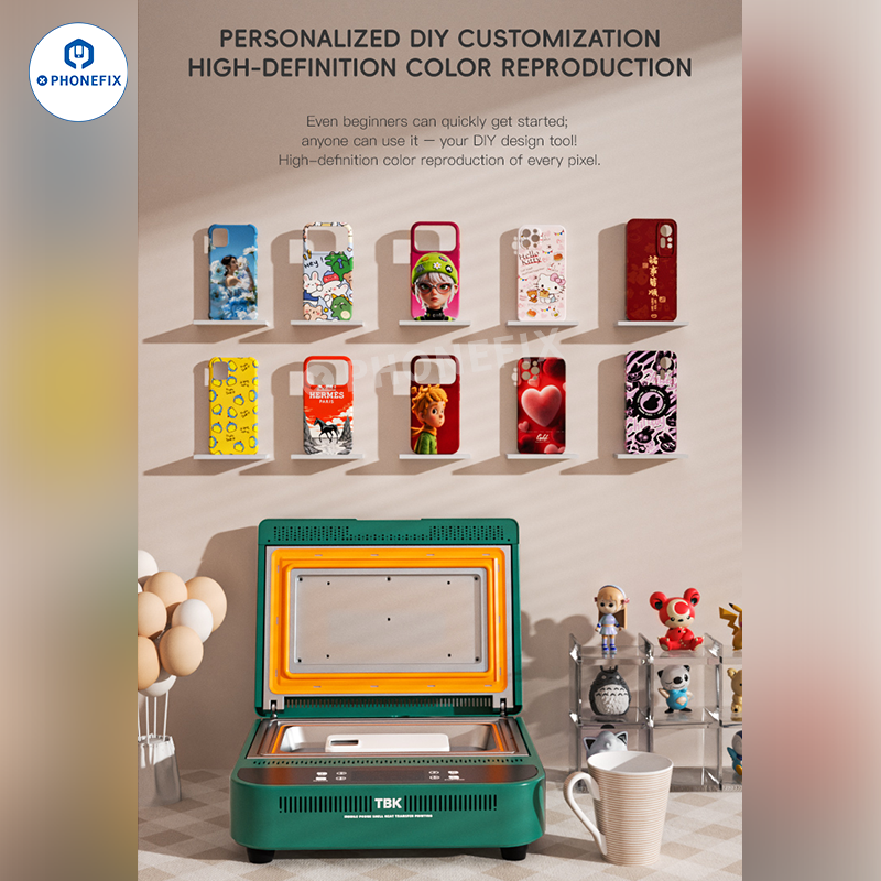 TBK-610 Thermal Transfer Machine for Custom-made iPhone Android Phone Cases. TBK 610 DIY Phone Case Image Heat Printer Machine features an intelligent pneumatic system and vacuum suction, capable of creating vibrant, high-definition patterns in approximately 5 minutes. The patterns can completely cover the phone case, including curved edges. Ideal for phone case enthusiasts and mobile phone retailers, and the high-efficiency 3D hot-pressing process is compatible with most phone models.