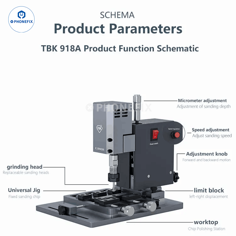 TBK-918 Smart Cutting Grinding Machine for Phone Flat/Curved Screen IC Grinder Back Cover Glass Polishing Repair. TBK 918A IC Grinder Phone CPU Chip Polisher for mobile phone RAM CPU IC grinding. TBK918 intelligent cutting and grinding machine, mobile phone curved screen cutting, chip grinding all-in-one machine, high-precision adjustment, simple operation.