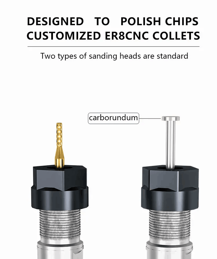 3. Designed to polish chips, customized ER8 CNC collects two types of sanding heads that are standard.