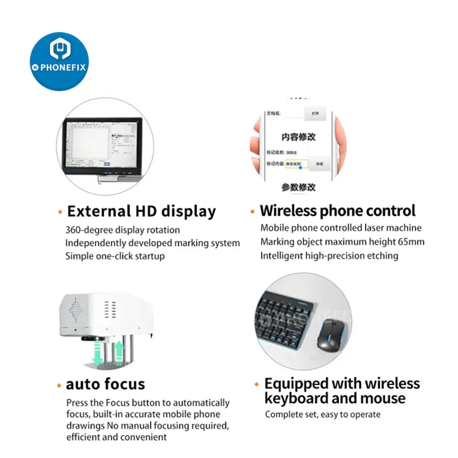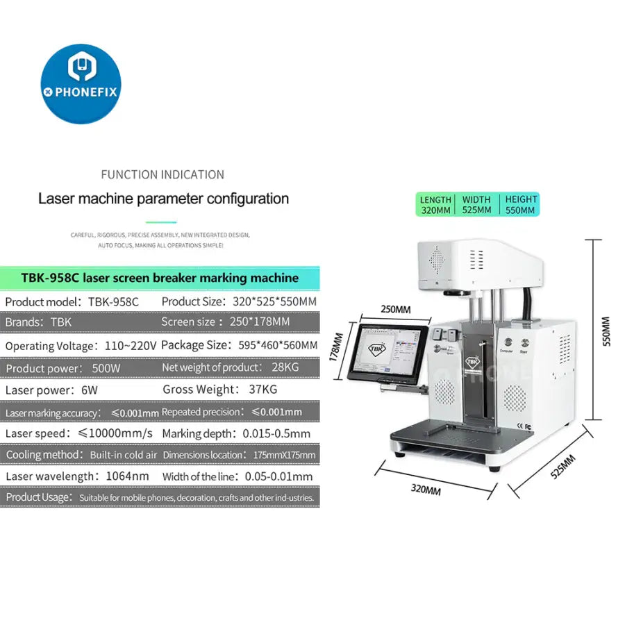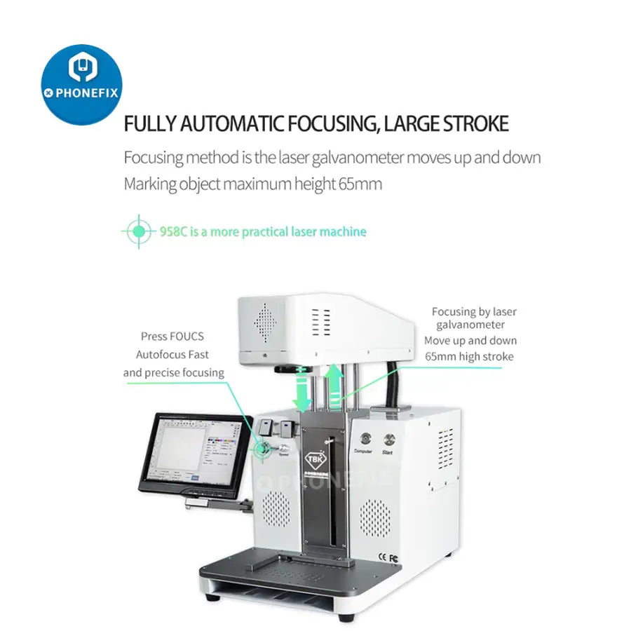 TBK-958C is the new version in 2020. mini laser screen breaker marking machine. stable,durable, low power ,consumption and high efficiency smaller size,light weight,the preferred overseas fully automatic focusing,large stroke brand new design ----- wireless phone control many functions can be controlled on the mobile phone, which is efficient to use fast , easy and convenient