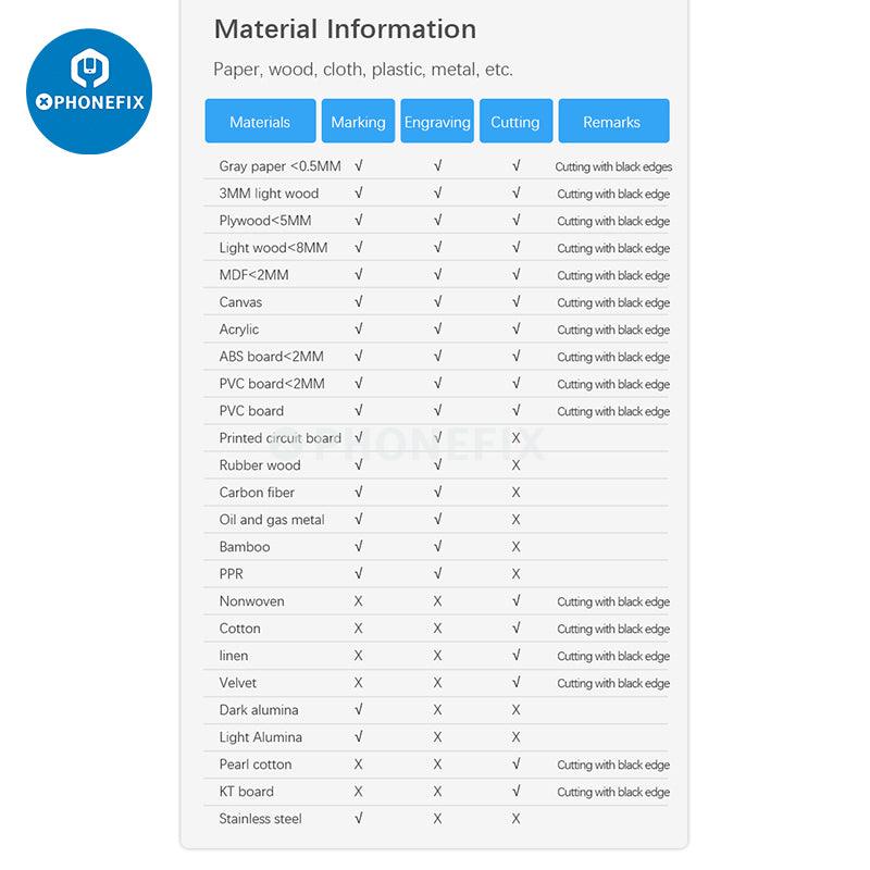 - DIY engraving and cutting for various materials.