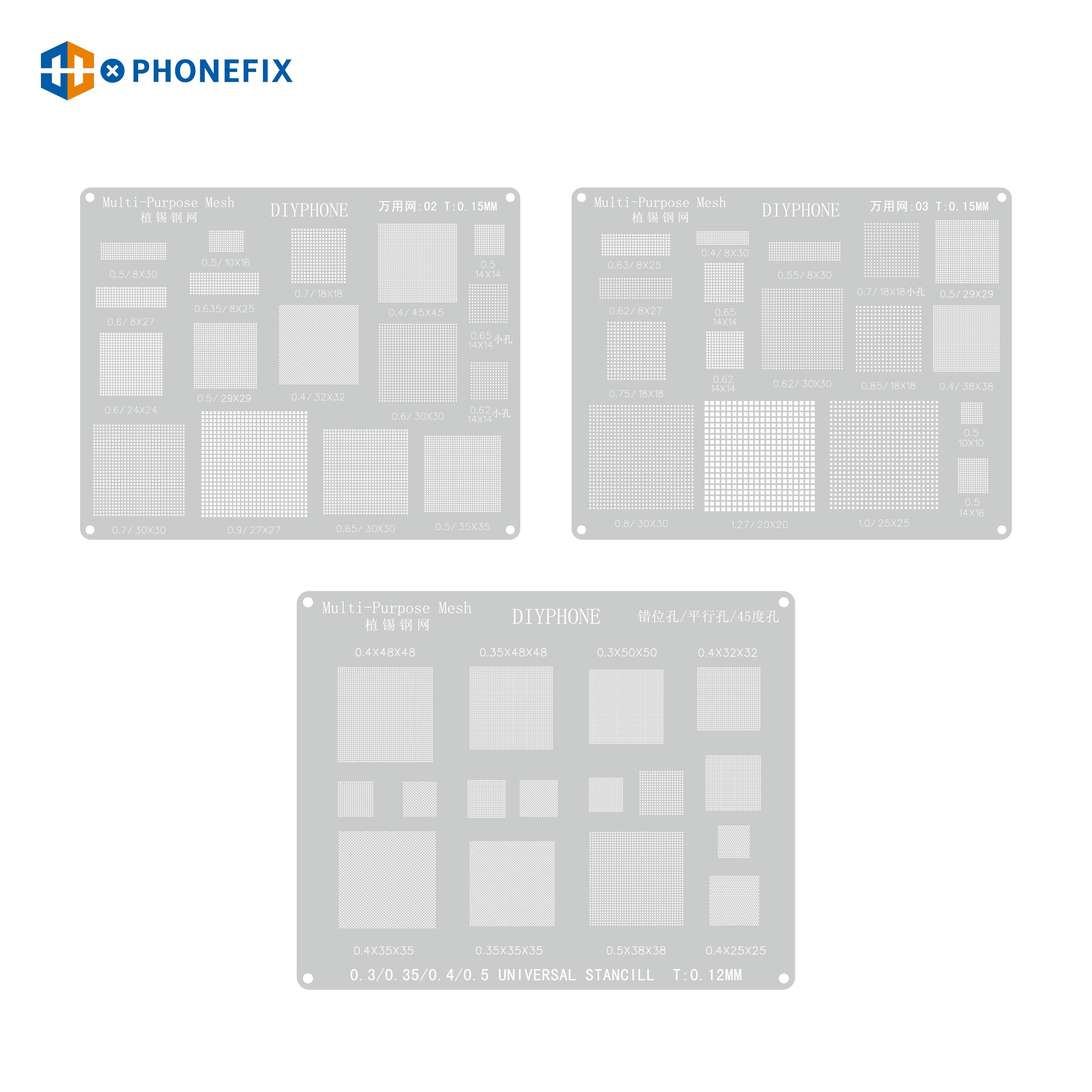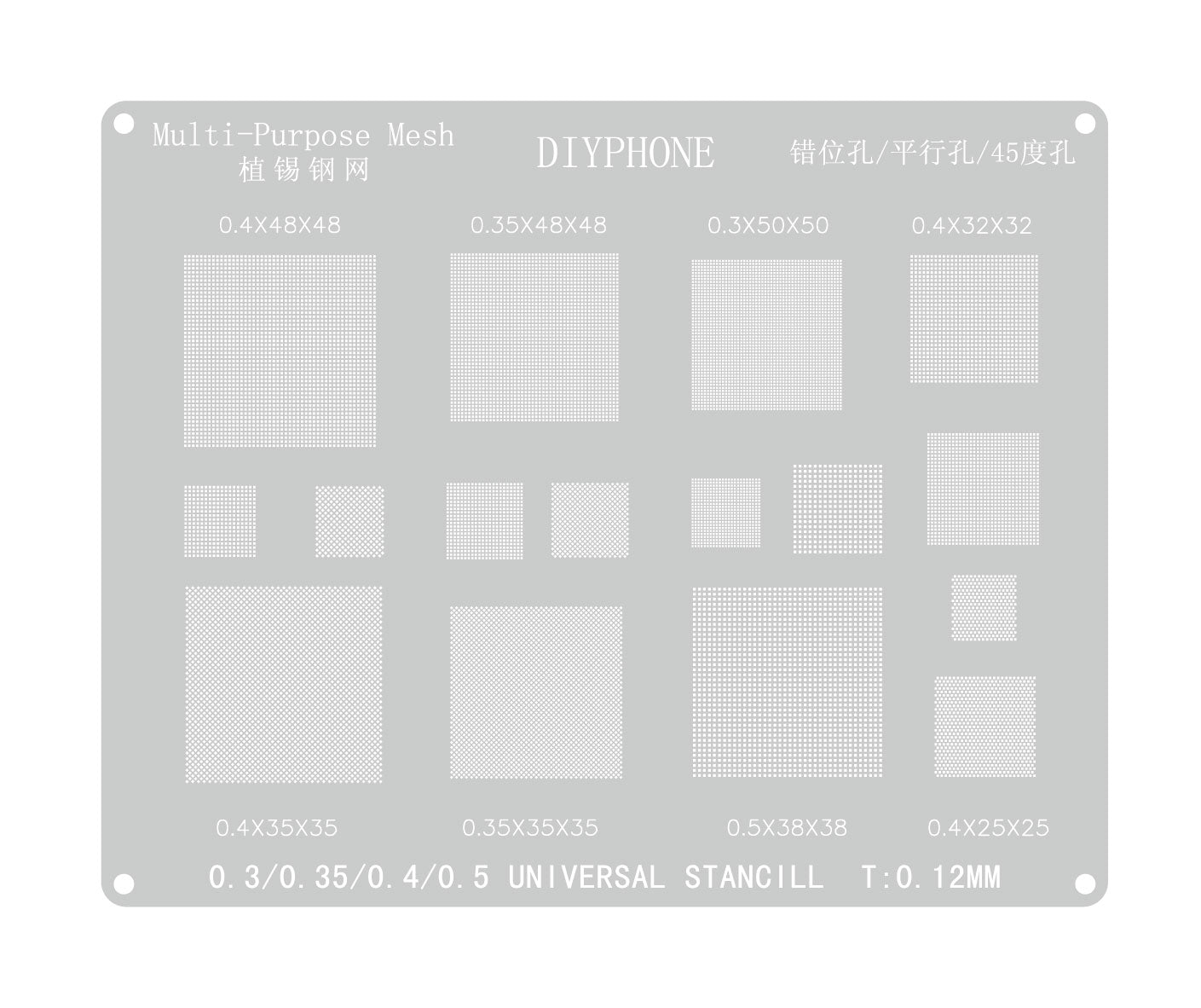 Multifunction 0.3 0.35 0.4 0.5mm BGA Reballing Stencil, DIYPHONE Square hole Direct heating BGA Template Planting Tin Steel Mesh for Mobile phone laptop CPU IC Chip