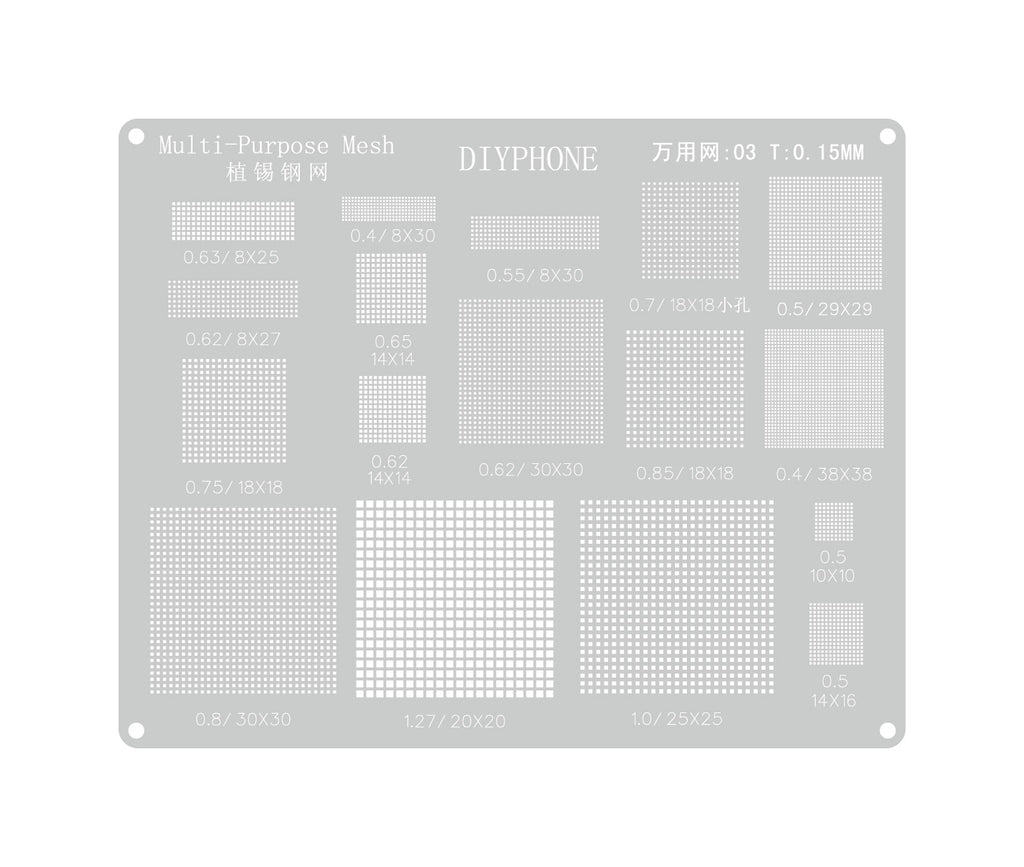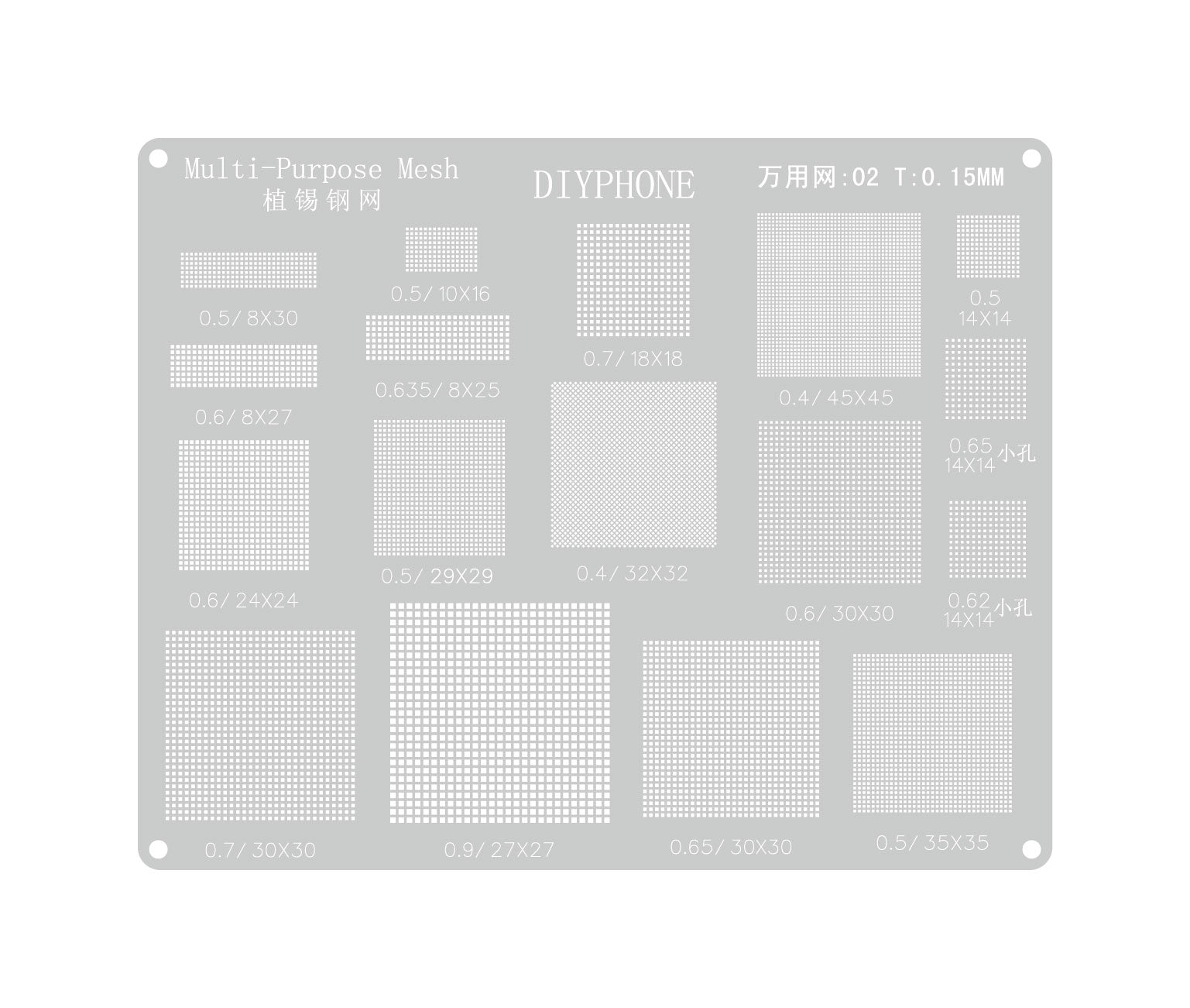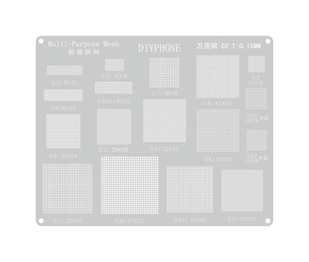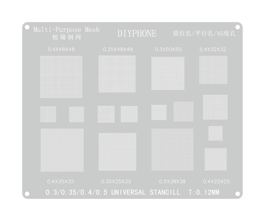 0.12mm / 0.15mm Multi-purpose Planting Tin Steel Mesh for Mobile phone laptop CPU IC Chip BGA Reballing repair.