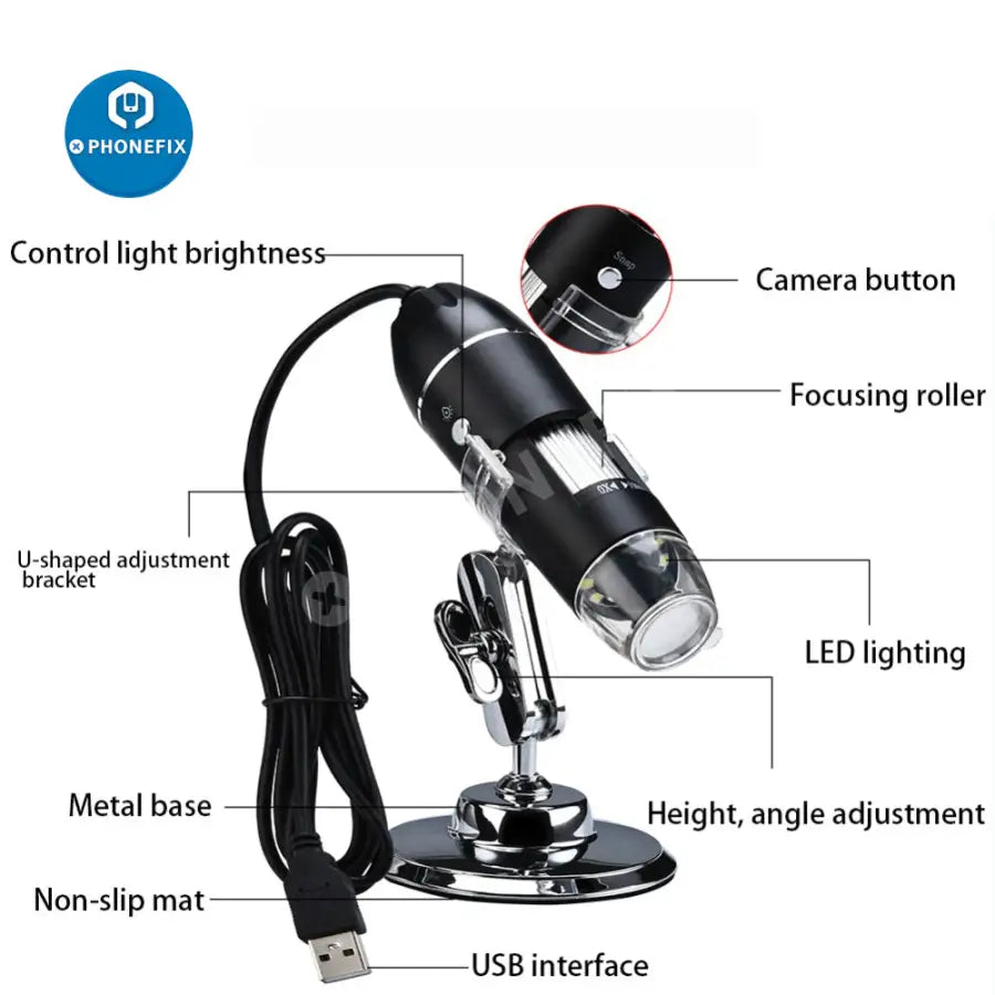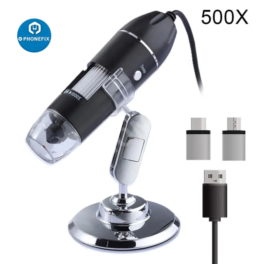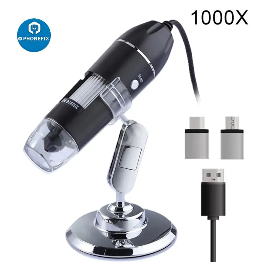 Adjustable 1600X 3 in 1 USB Digital Microscope Type-C Electronic Microscope Camera For Solding 8 LED Zoom Magnifier Endoscope