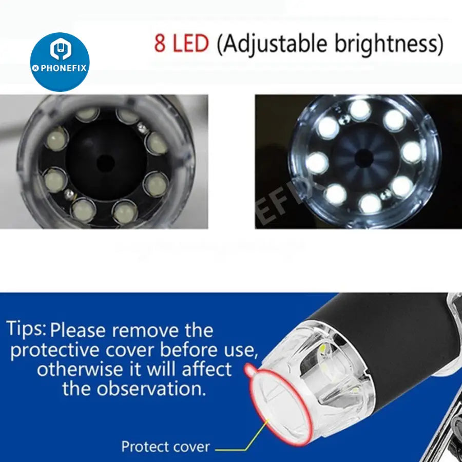 1.1600X Magnification : 1600x magnifies, capture clearly details. Built in 8 LED light.