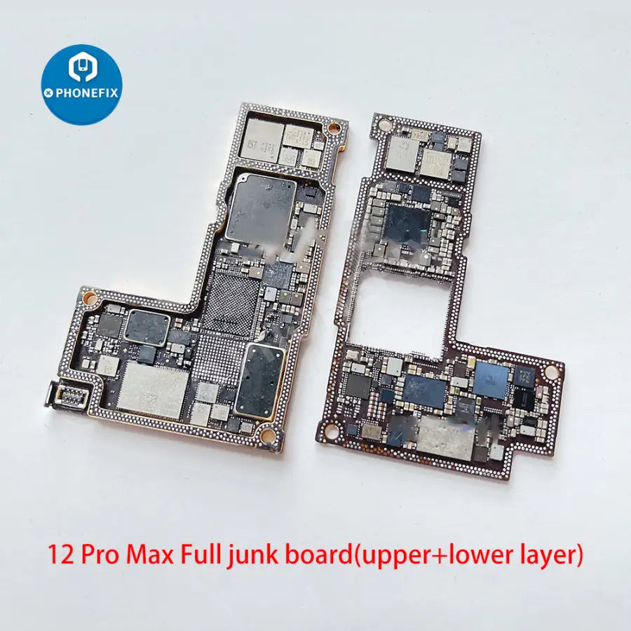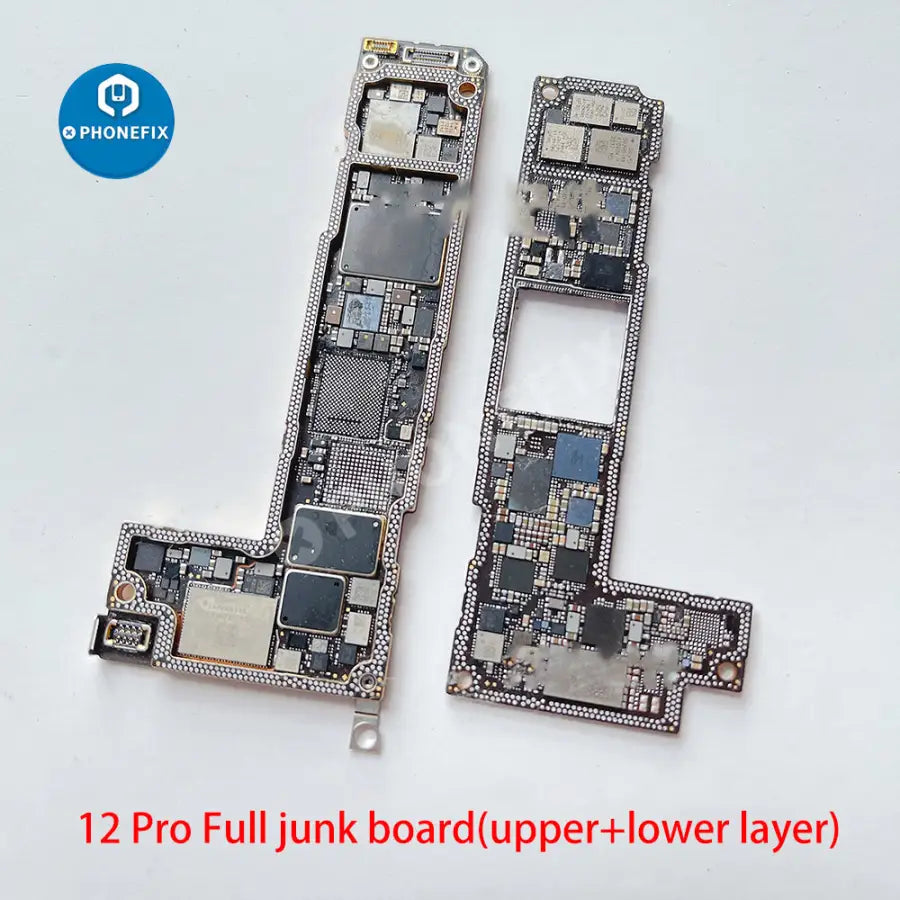 Junk damaged logic board for iPhone X-12 Pro Max skill training, iPhone X-12 Pro Max motherboard repair consumables CNC Board for iPhone motherboard repair skill training, it is damaged and used iPhone motherboard, damaged and not working iPhone logic board for skill training.