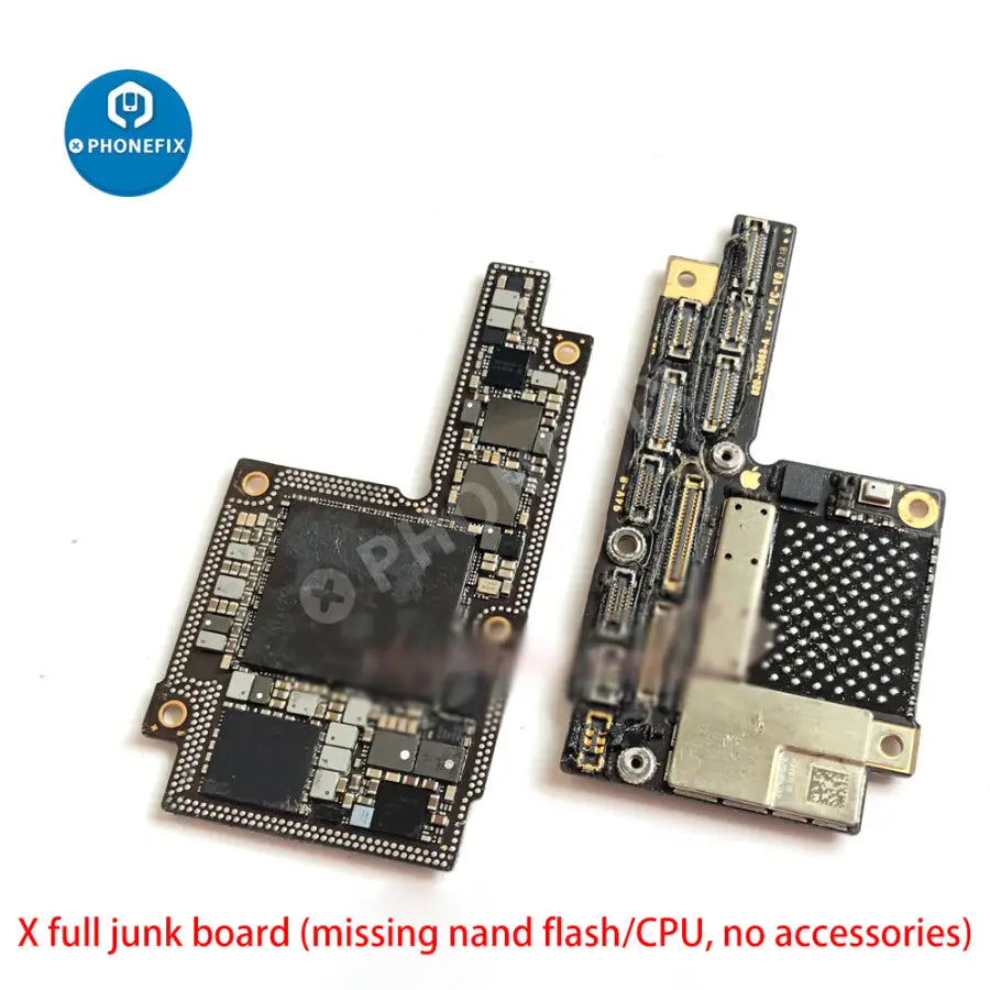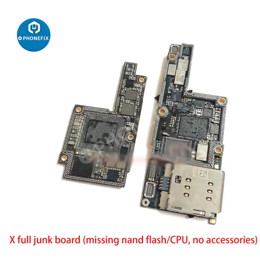 Models: X upper layer board (missing nand flash/CPU, no accessories) X lower layer board (Qualcomm, missing nand flash/CPU, no accessories) X full junk board (missing nand flash/CPU, no accessories) X upper layer with CPU(missing nand flash, no accessories) XS upper layer with CPU(missing nand flash, no accessories) XS Max upper layer with CPU(missing nand flash, no accessories) XS upper layer board(missing nand flash/CPU, no accessories) XS lower layer board(missing nand flash/CPU, no accessories) XS Max upper layer board(missing nand flash/CPU, no accessories) XS Max lower layer board(missing nand flash/CPU, no accessories) XR junk board (missing nand flash/CPU, with 3 holes) XS Max junk board (missing nand flash/CPU, with 3 holes) 11 junk board (missing nand flash/CPU, with 3 holes) XR board with CPU(missing nand flash, no accessories) XR complete board (faulty board) X complete board (faulty board) XS complete board (faulty board) XS MAX complete board (faulty board) 11 Pro full junk board(upper+lower layer) 11 Pro Max Full junk board(upper+lower layer) 12 full junk board(upper+lower layer) 12 Pro Full junk board(upper+lower layer) 12 Pro Max Full junk board(upper+lower layer) 11 upper layer with CPU(missing nand flash, no accessories) 11 Pro upper layer with CPU(missing nand flash, no accessories) 11 Pro max upper layer with CPU(missing nand flash, no accessories) iPhone 11 complete board(faulty board) iPhone 11 Pro complete board(faulty board) iPhone 11 Pro Max complete board(faulty board)