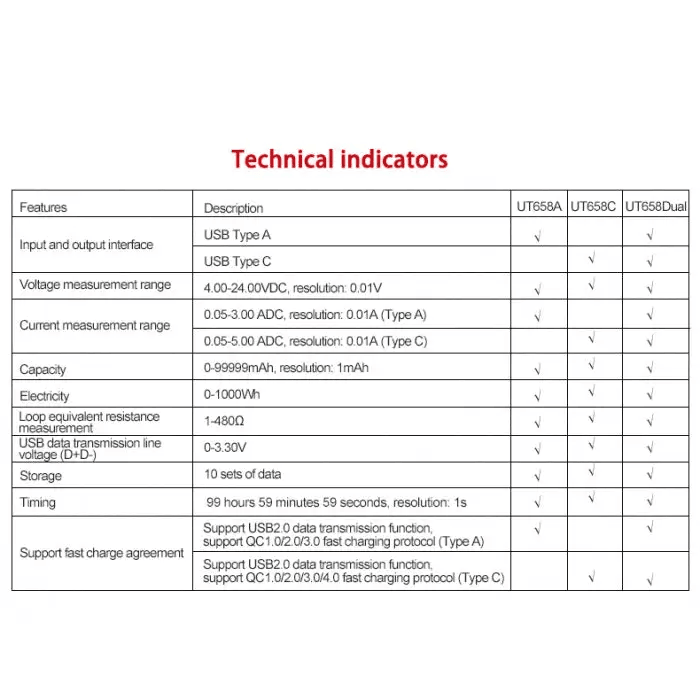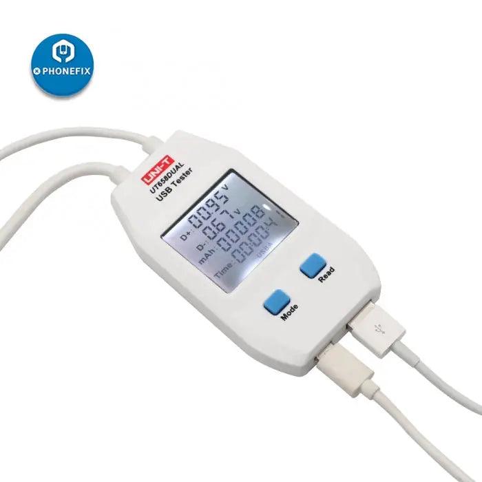 - The UT658 series second-generation USB tester is a new type of instrument for the quality inspection of chargers, mobile power supplies, data lines and other charging devices for 3C products