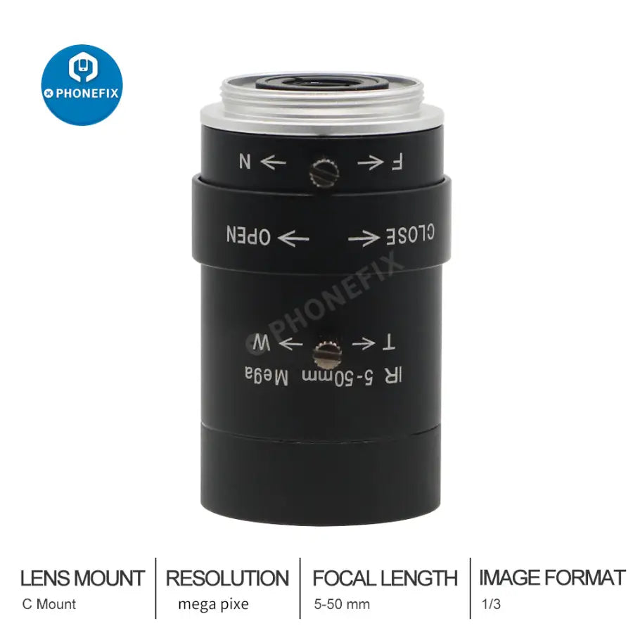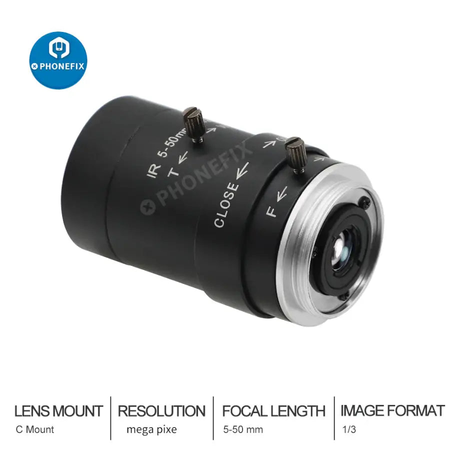 Tips: 1. 6-12mm Len is your best choice and there is no distortion in output image. 2. The longer the focal length, the farther the view; the longer the focal length, the smaller the view field. 3. Len Applicable for Phone Repair: 6-60mm/5-50mm