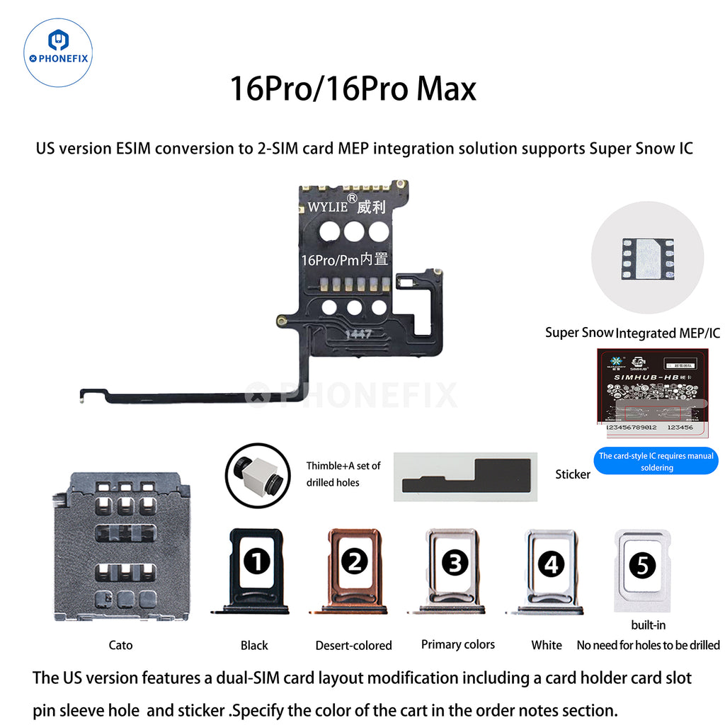 WYLIE iPhone 14-17 eSIM to 2 SIM MEP Kit Supports DB UltraSnow IC