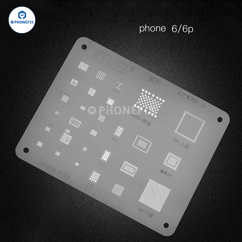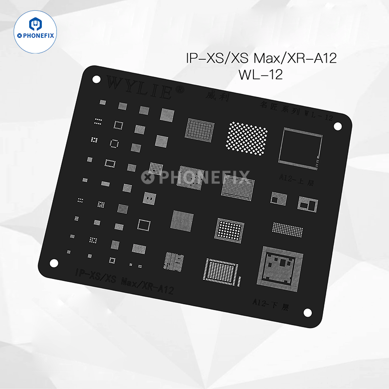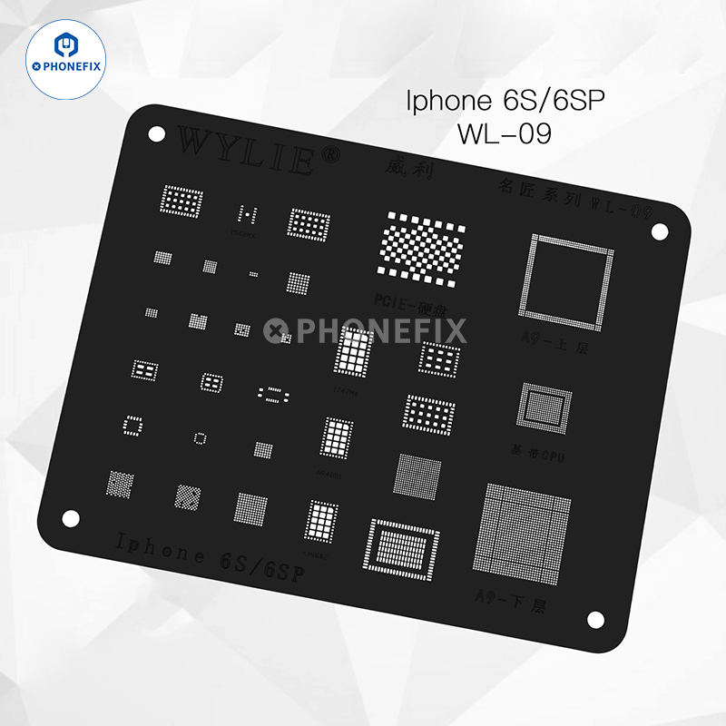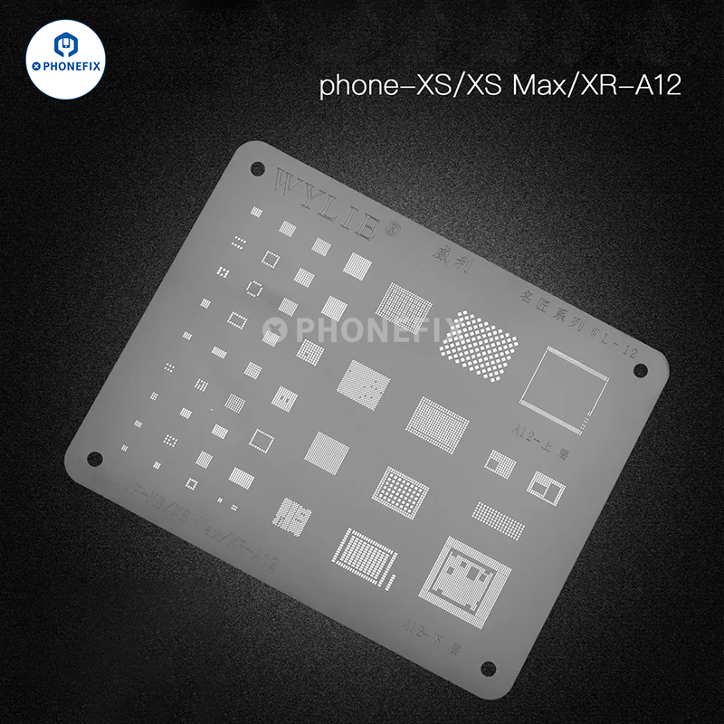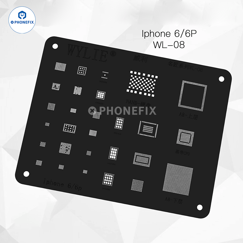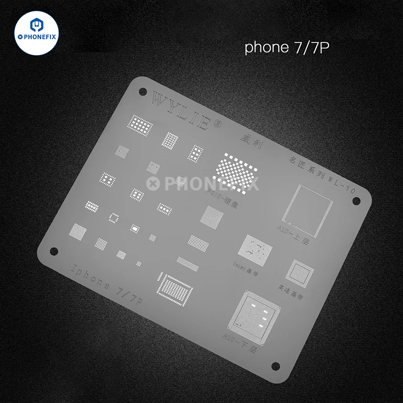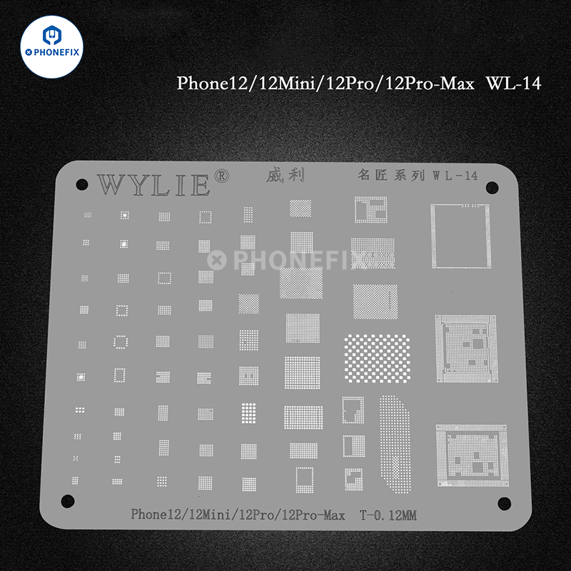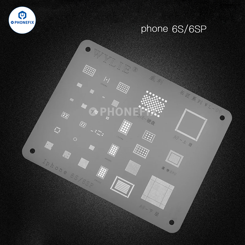 WYLIE WL-01 to WL-15 BGA reballing stencil for iPhone CD display screen IC soldering repair. WYLIE reballing stencil for iPhone LCD screen IC dot matrix face ID IC soldering repair. High quality square hole iPhone display IC reballing stencil. allows you to swap out photos, videos, and play games without having to take it off.