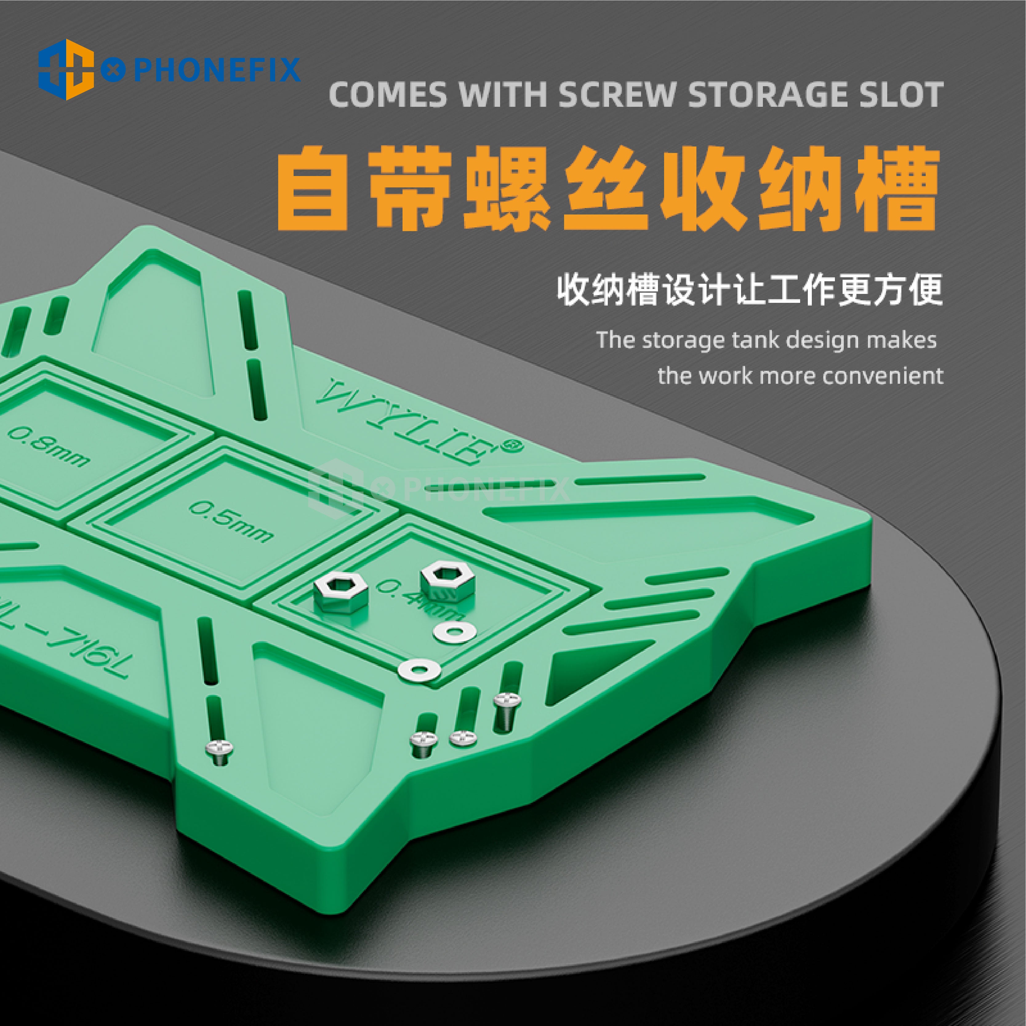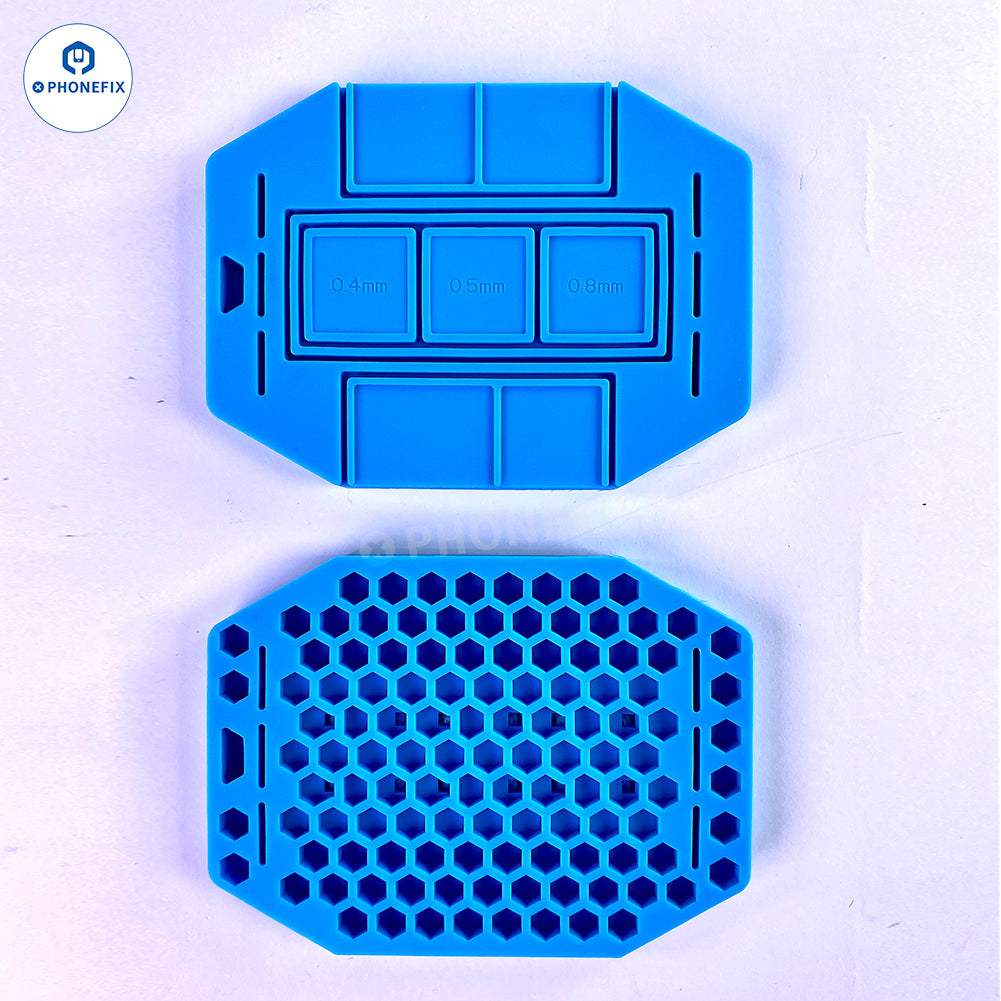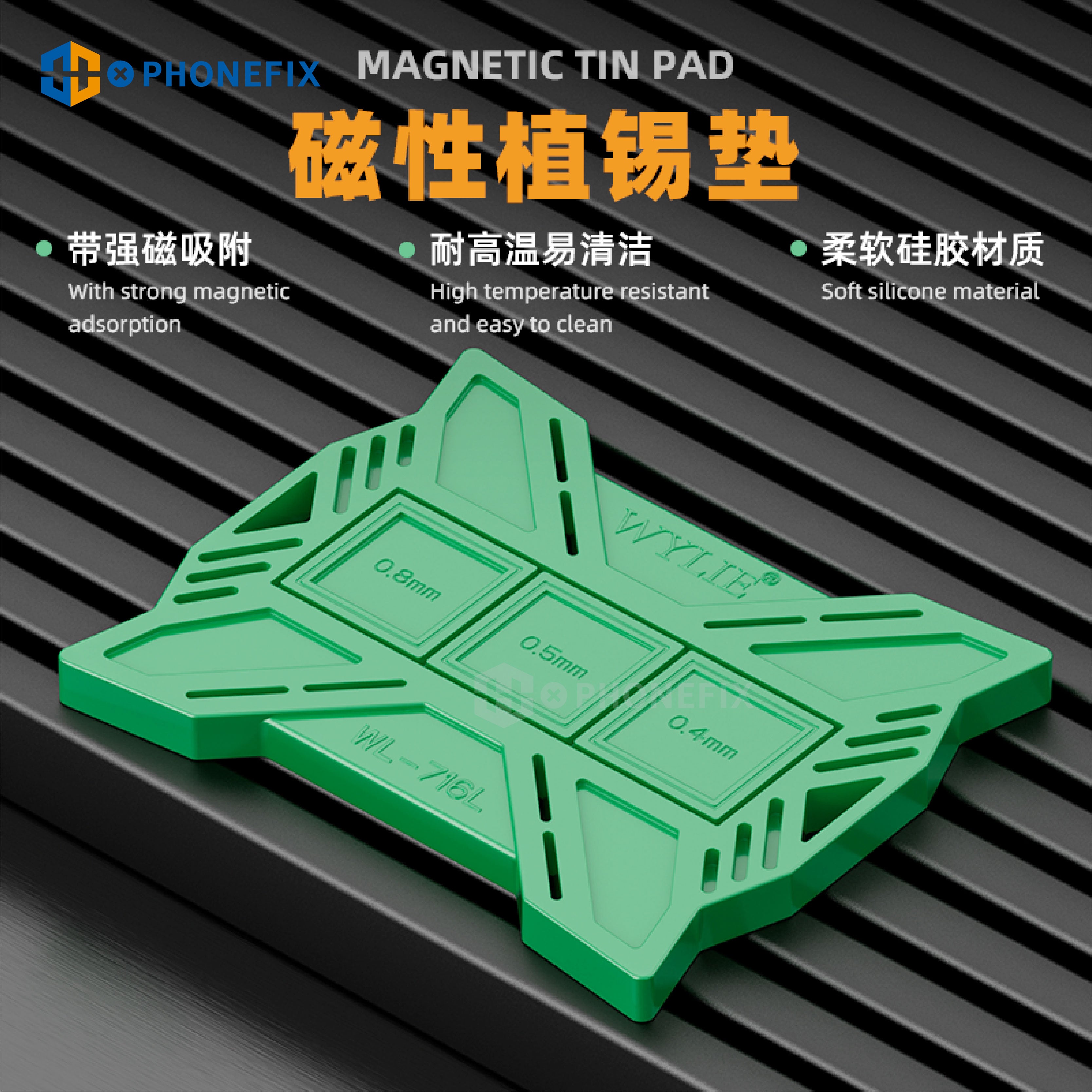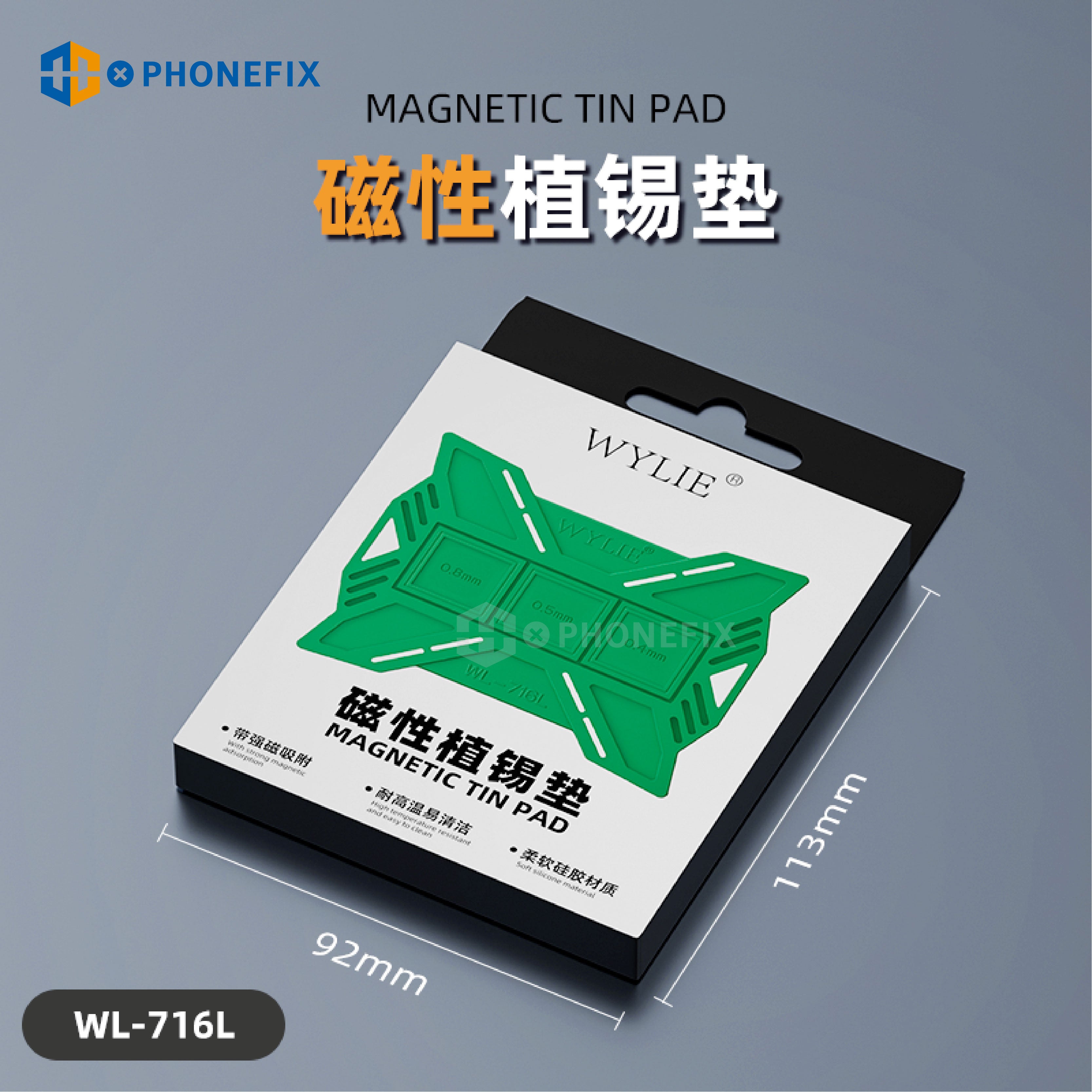 WYLIE WL-716L universal Mini high temperature resistant chip welding magnetic tin pad. HW-718 Multifunctional magnetic tin-plated silicone pad with custom grooves and strong magnetic silicone treatment device to protect BGA chip and used for iPhone BGA CPU IC welding repair.