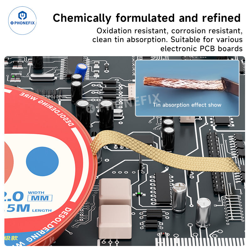 Convenient: The welding on the can be sucked away to guarantee that there is no short circuit between the pins, using a soldering wire to clean the pads when reballing for BGA components can greatly increase the success rate