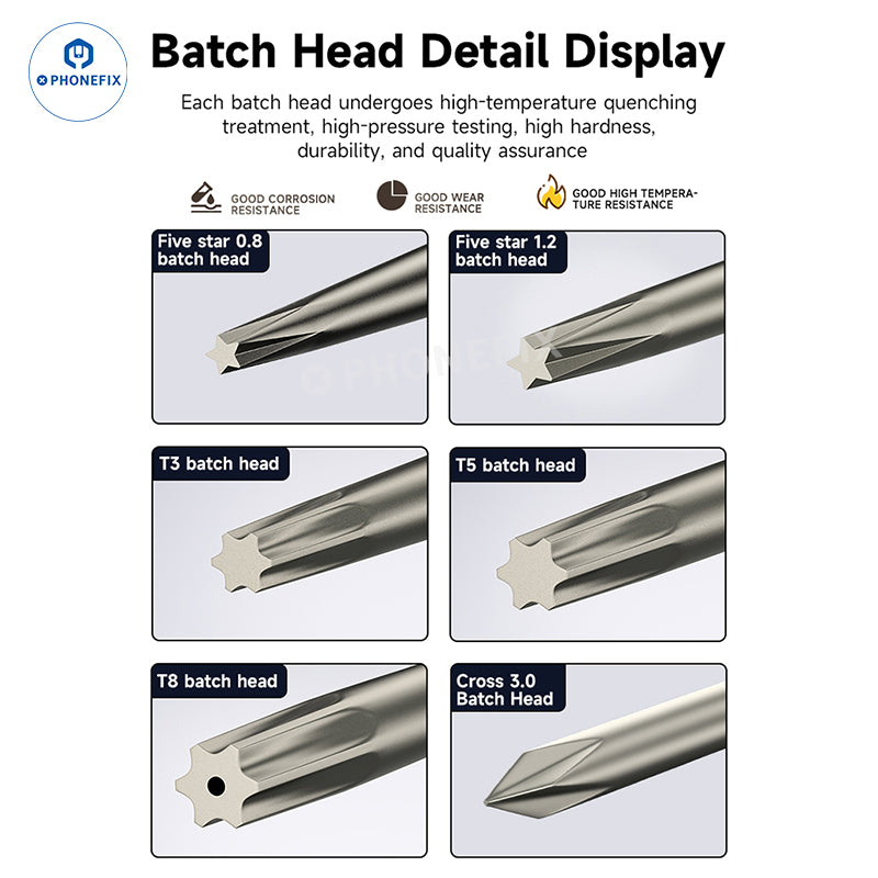 Model: Pentalobe 0.8mm 1.2mm, Hexagonal T3 T5 T8, Phillips Cross 3.0 bits.