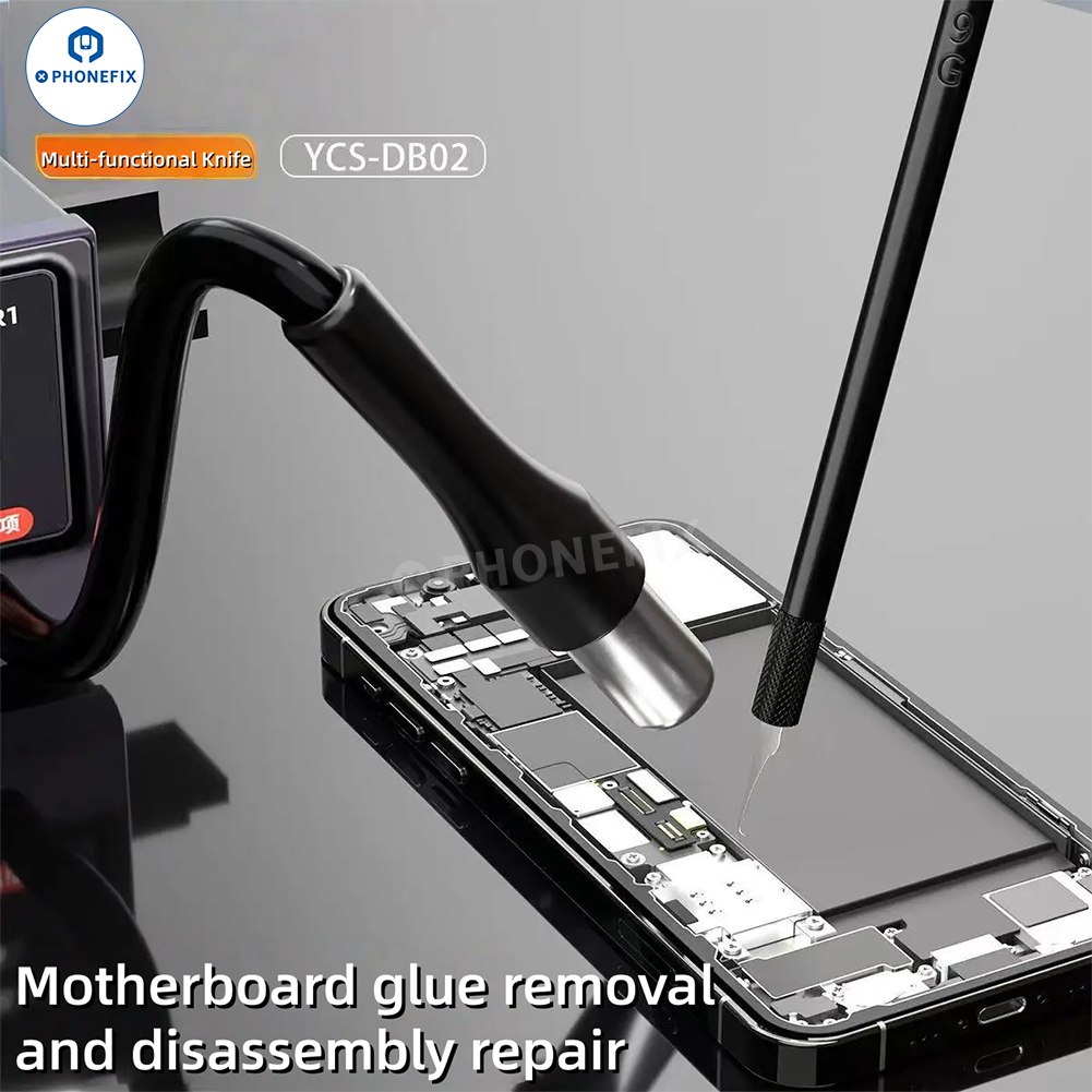 YCS DB02 Multi-Function Spudger Blade Set for mobile phone CPU Nand Flash Chips Removal and Glue Removal. YCS DB02 blade set includes a non-slip textured handle, sturdy blades, and a high-quality metal case for easy portability and storage, suitable for repairing mobile phones, electronic circuits, tablets, and other digital devices.