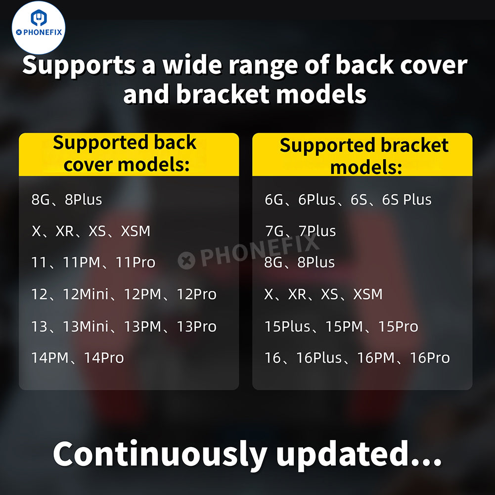 6. Supports multiple models: Compatible with multiple iPhone back covers and brackets, with models continuously updated.