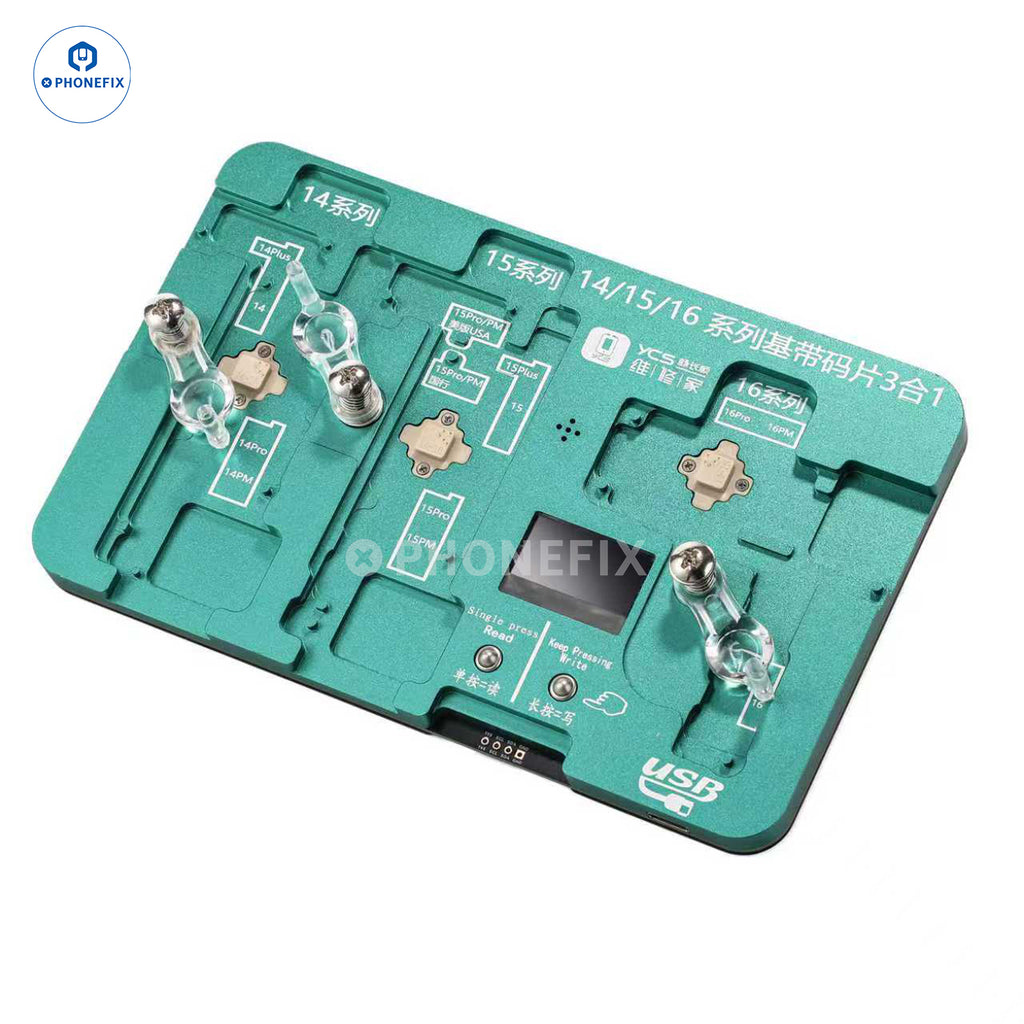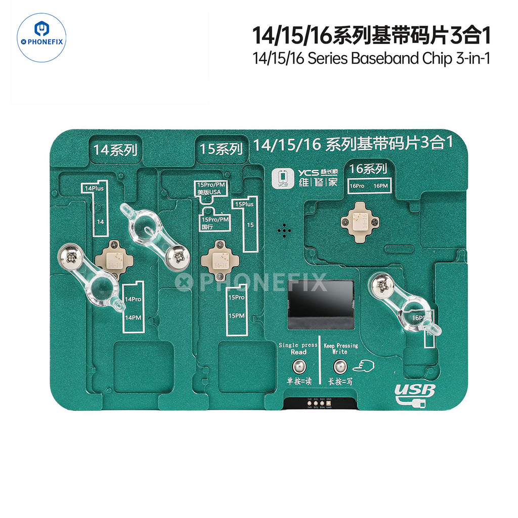 YCS 14/15/16 series baseband chip EEPROM read and write tool programmer for iPhone 14/14 Plus/14 Pro/14 Pro Max/15/15 Plus/15 Pro/15 Pro Max/16/16 Plus/16 Pro/16 Pro Max baseband eeprom IC programming without chip removal. It features voltage and current detection and short-circuit alarm functions to ensure operational safety and supports local data backup protection. Suitable for the repair and restoration of baseband chips in iPhone 14/15/16 series.