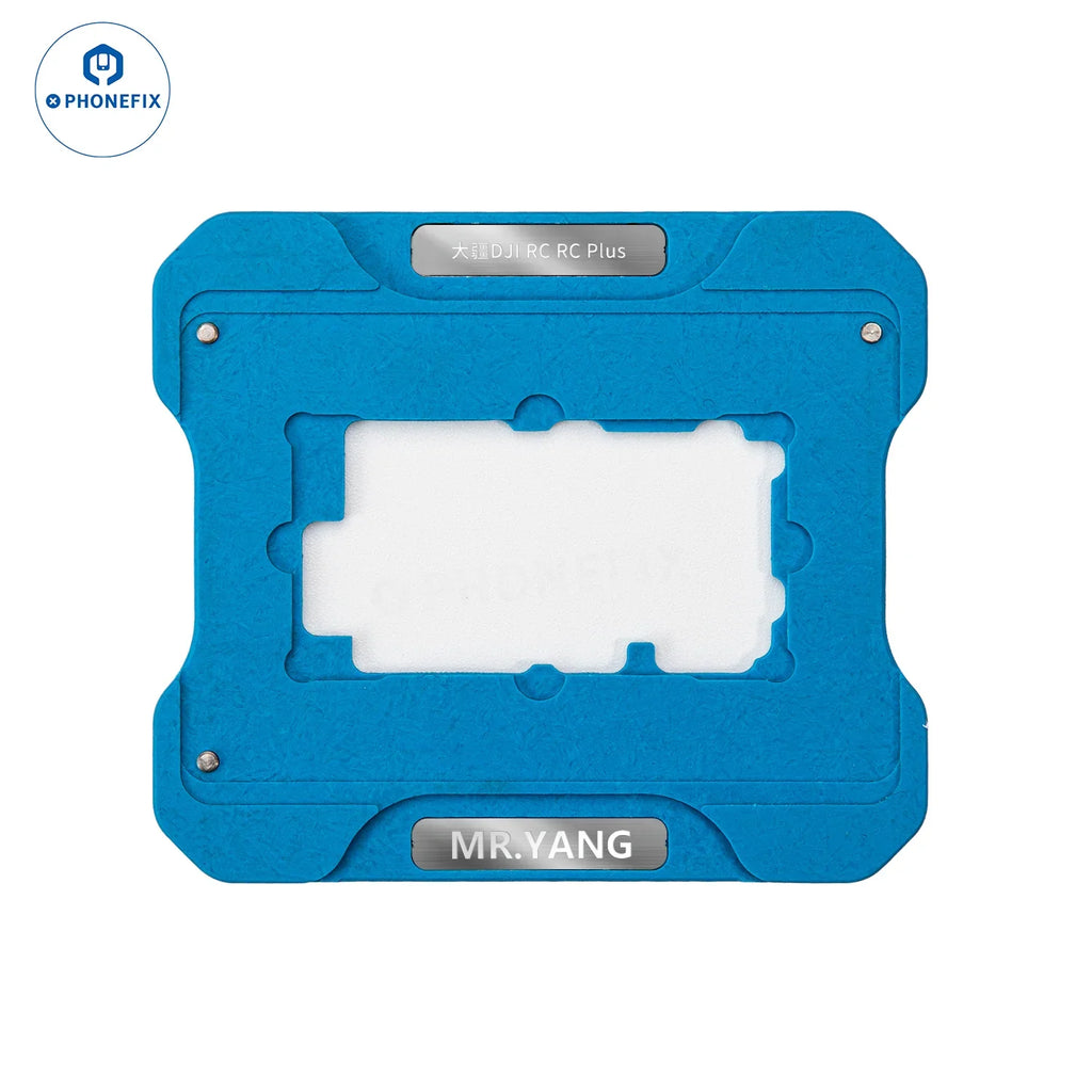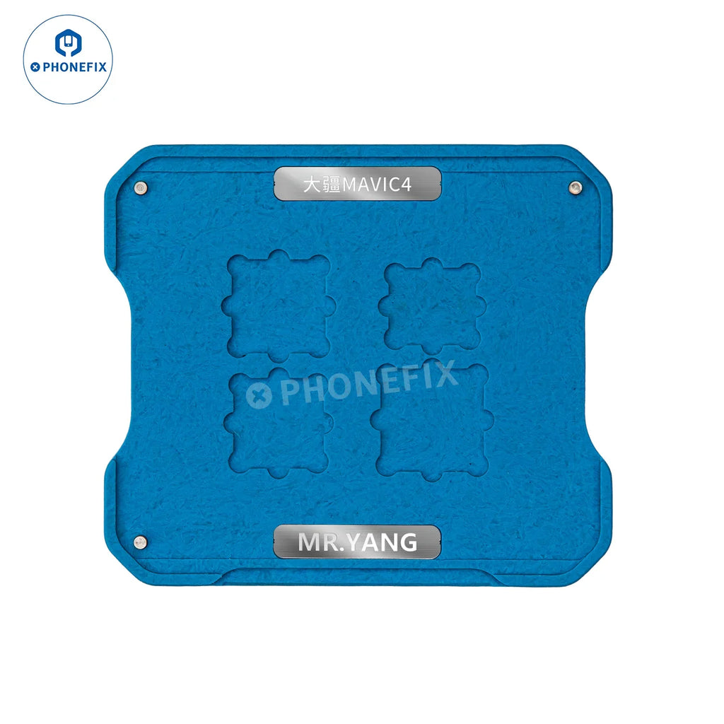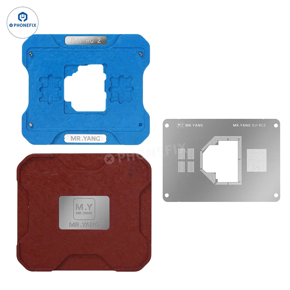 YCS MR. YANG M.Y comprehensive reballing stencil for DJI Drones IC soldering repair, like DJI Air 3/mini3/3Pro/4Pro/5Pro. YCS M.Y soldering magnetic base with T2/RC2/RC Plus/Mavic4 positioning plate and CPU reballing stencil for DJI RC2 T2 Mavic4 repair. Professional YCS DJI Drone repair tools.