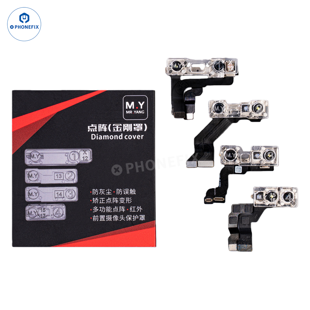 YCS M.Y Magnetic Diamond Cover for protecting iPhone X-17 Pro Max front camera lens and dot matrix module during mobile phone repair. Effectively prevents dust from entering the iPhone camera lens, corrects dot matrix distortion, protects the iPhone front camera lens, and is a multi-functional iPhone dot matrix infrared protective cover.