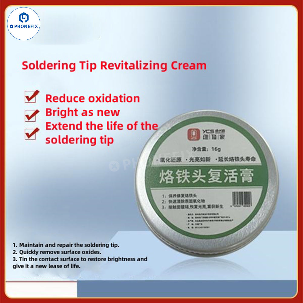 YCS Soldering Iron Tip Refresher Oxidation Removal Revitalizing Cream for soldering tips cleaning, extend the life of the soldering iron tip, make the soldering iron tip as bright as new, and restore it to its original appearance after oxidation.