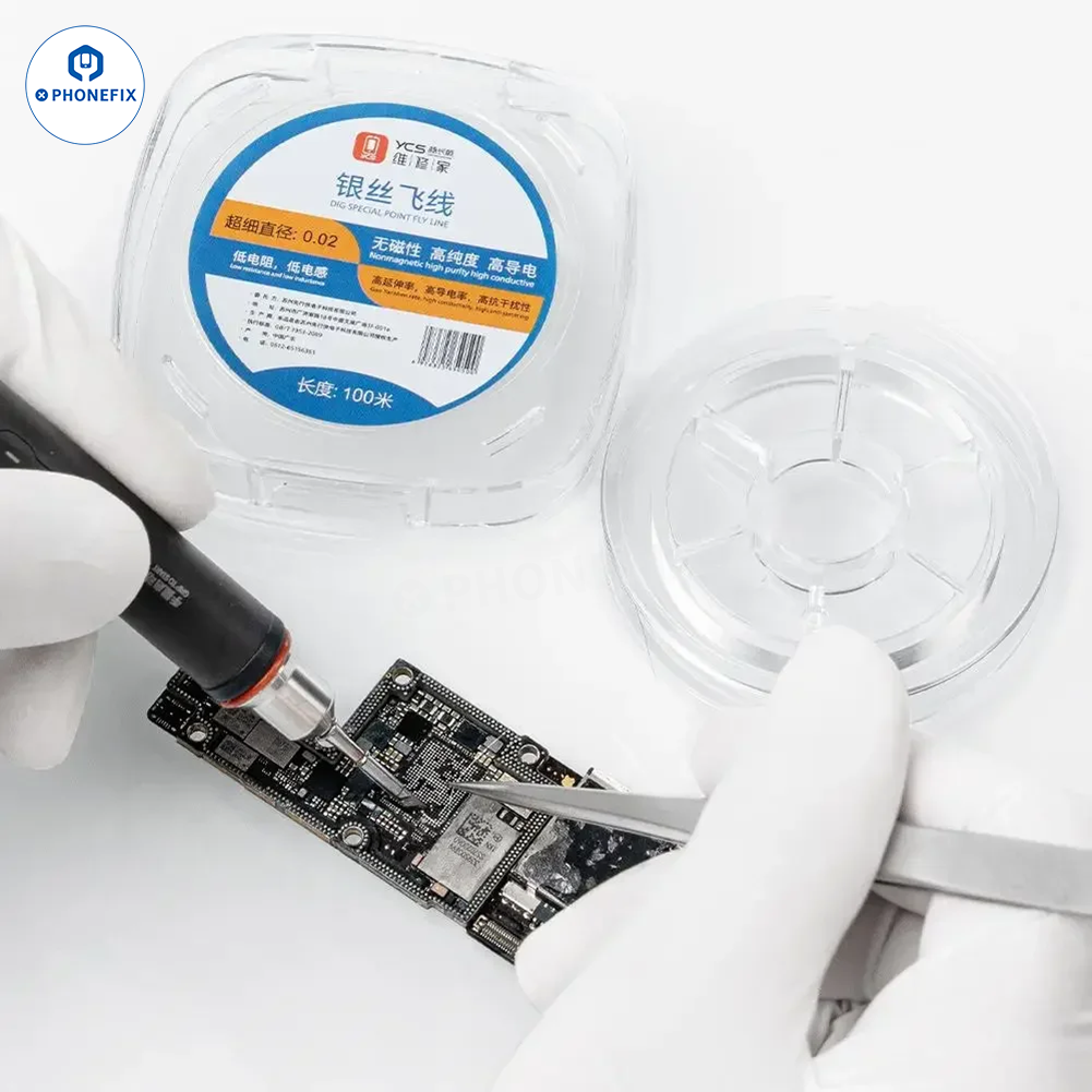 YCS 0.02mm Silver/0.04mm Copper Jumper Wire for Mobile Phone Motherboard PCB CPU Welding Repair. Non-magnetic, good toughness,easy to tin, no breakpoints, low solder resistance. Recommended by YCS Yang for mobile phone motherboard soldering repair.
