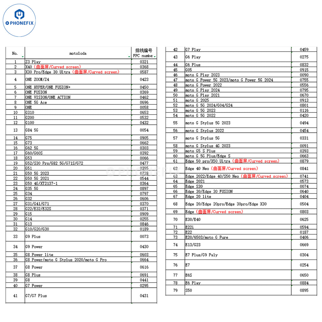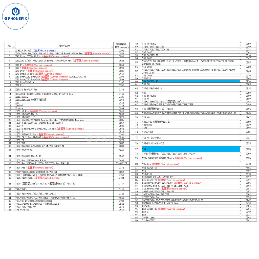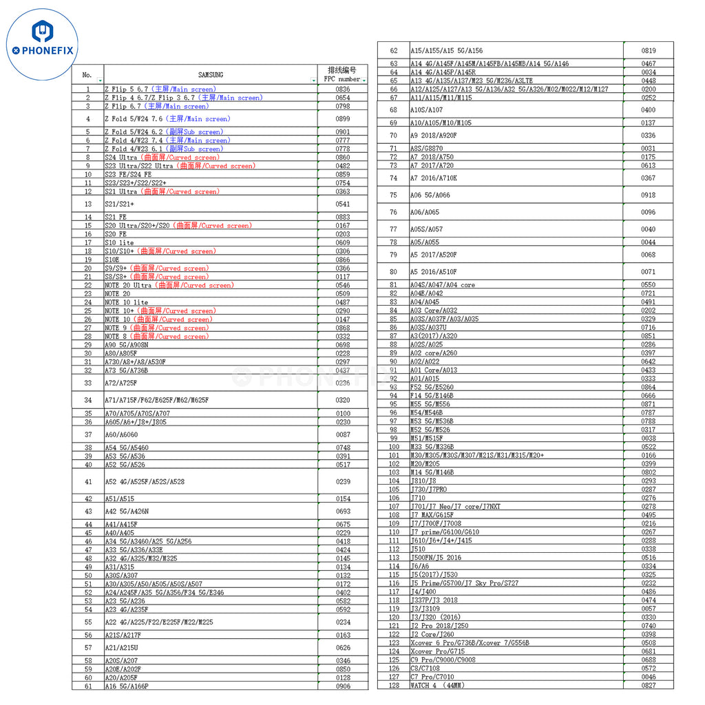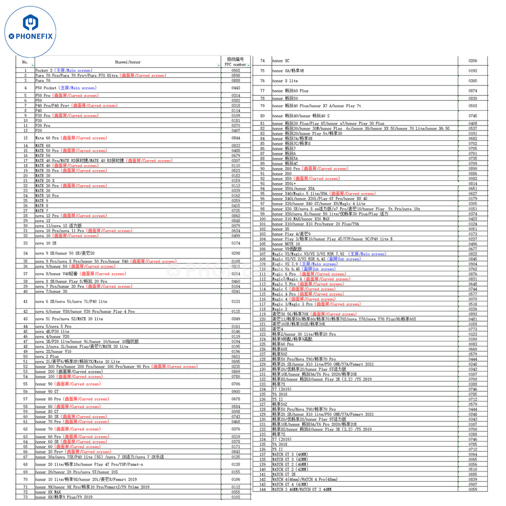 Option: 1. YCX M830 screen tester (No battery). 2. YCX M8 screen tester (No battery). 3. YCX M8/M830+ 25pcs test cable for iPhone 6-16 Plus (No include 13 Pro-16 Pro Series). 4. Phone screen test cables (Pls choose the models). Please note: There are too many Android phone models, please check the pictures, select the correct model, and leave a message stating the model you need, or send an email to myvipprogrammer@gmail.com. Software: https://drive.google.com/file/d/1rLdvMh6nWINgGAJQ4fq0aONoxuVCaIz3/view?usp=sharing