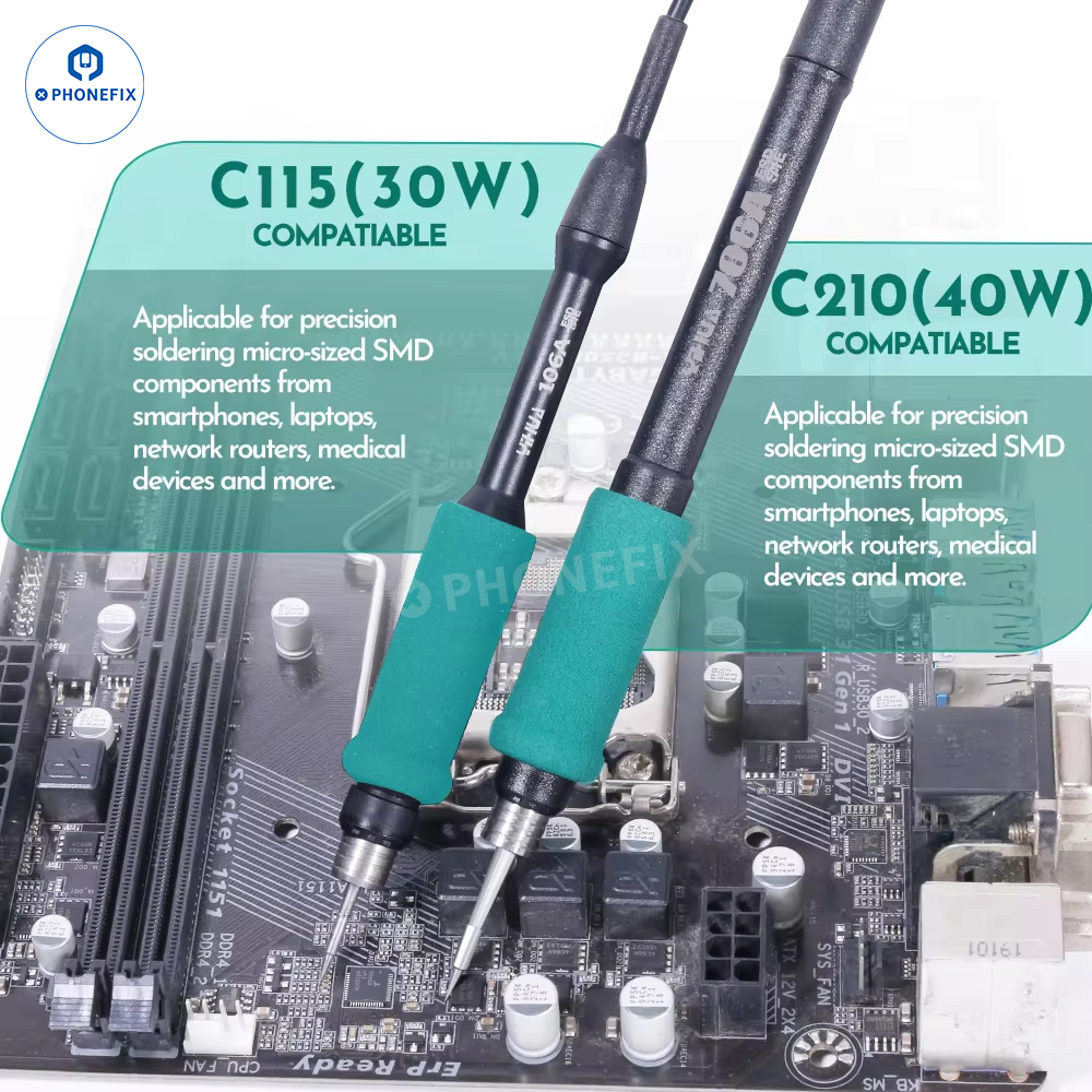 2. Compatible with T115/T210 handles, a variety of heating cores in different shapes (C210/C115 series soldering tips), suitable for different scenarios.